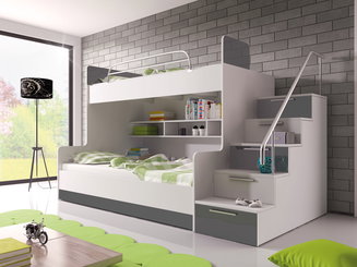Emeletes gyerekágy 180x75 cm Karin (ágyráccsal és matraccal) (fehér + rózsaszín)