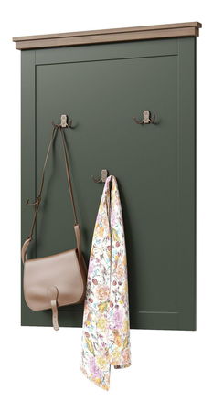 Fali akasztós panel - Navori (zöld + Lefkas tölgy) - Stílusos kiegészítője a belső térnek! A letisztult vonalak és a jellegzetes részletek tökéletesen kiegészítik a Talvar modellcsalád többi darabját. A fali panel méretei 105 x 71 x 7 cm.