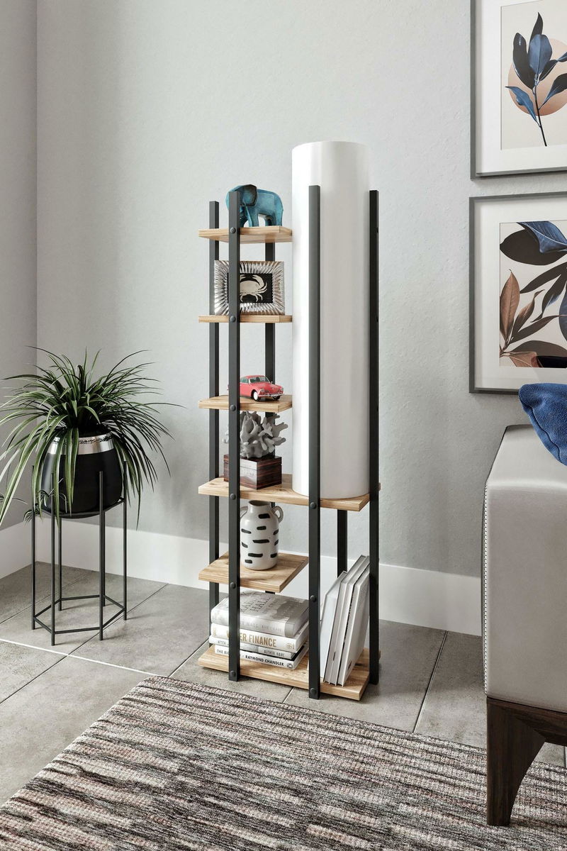 Állólámpa polcokkal Derotessa 2 (fekete + fehér + természetes)