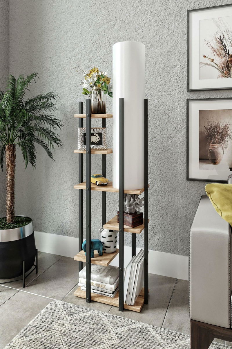 Állólámpa polcokkal Vultarella 1 (fekete + fehér + természetes)