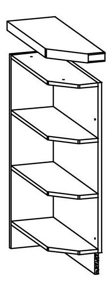 Alsó konyhaszekrény vagy polc nyitott polcokkal. Szélesség 20 cm. A munkalap külön megvásárolható.