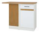 Alsó egyajtós sarokszekrény, jobb oldali ajtóval. Kiegészíti a konyhaszekrényt a bal oldalon.