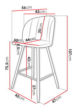 A bárszék ideális választás azok számára, akik kényelmet és stílust keresnek. Hangsúlyozza modern karakterét a Kaziro kárpitozott székünkkel, háttámlával. Ez az elegáns és funkcionális szék minden környezet stílusos kiegészítője lesz. A modell puha kárpitozásával nyűgözi le a felhasználót, amely magas szintű kényelmet biztosít pihenés közben. A bársonyos anyagnak köszönhetően a kárpitozott bárszék stílusos és esztétikus hatást kelt. A szoba eleganciáját és stílusát emeli, és a divatos színeknek köszönhetően tökéletesen illeszkedik az Ön ízléséhez és preferenciáihoz. Méretek: szélesség: 52 cm, magasság: 107 cm, ülésmagasság: 107 cm: 75,5 cm, mélység: 56 cm, ülésmélység: 56 cm: üléshossz: 44 cm. Kivitel: Váz: fekete porfestett fém, ülés: 15 mm rétegelt lemez + 4 cm vastag T25 hab, háttámla: 10 mm rétegelt lemez + 2 cm T18 hab Garancia: 24 hónap