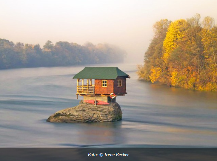 A szerbiai Drina folyó vizének kitéve, Bajina Basta falu közelében, egy sziklán áll egy kis ház, amely csónakkal vagy kajakkal megközelíthető. 1968-ban építtette egy csapat fiú, akik nyáron kényelmes napozásra akarták használni. A teraszon kívül egy kis szoba is található benne. A faszerkezetnek sok viharral és árvízzel kellett szembenéznie, de minden kár után gondosan újjáépítették a házat.