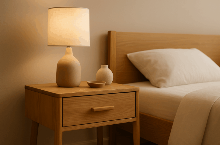 A háztartási rituálékkal kapcsolatos viselkedési tanulmány szerint minden este átlagosan öt tárgyat (mobiltelefon, szemüveg, csésze, távirányító, kézkrém) teszünk el. Egy nyitott polc megkönnyíti a hozzáférést, míg egy fiók elrejti a privát csecsebecséket mind a por, mind a vendégek szeme elől. A puha tapintású kihúzható fiókok 45%-kal csökkentik az akusztikus impulzusokat a hagyományos éjjeliszekrényekhez képest, hozzájárulva a nyugodt éjszakai alváshoz.