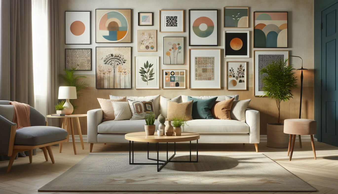 Absztrakt festmények: Minimalista absztrakt festmények semleges színekkel, például fehér, szürke és fekete.