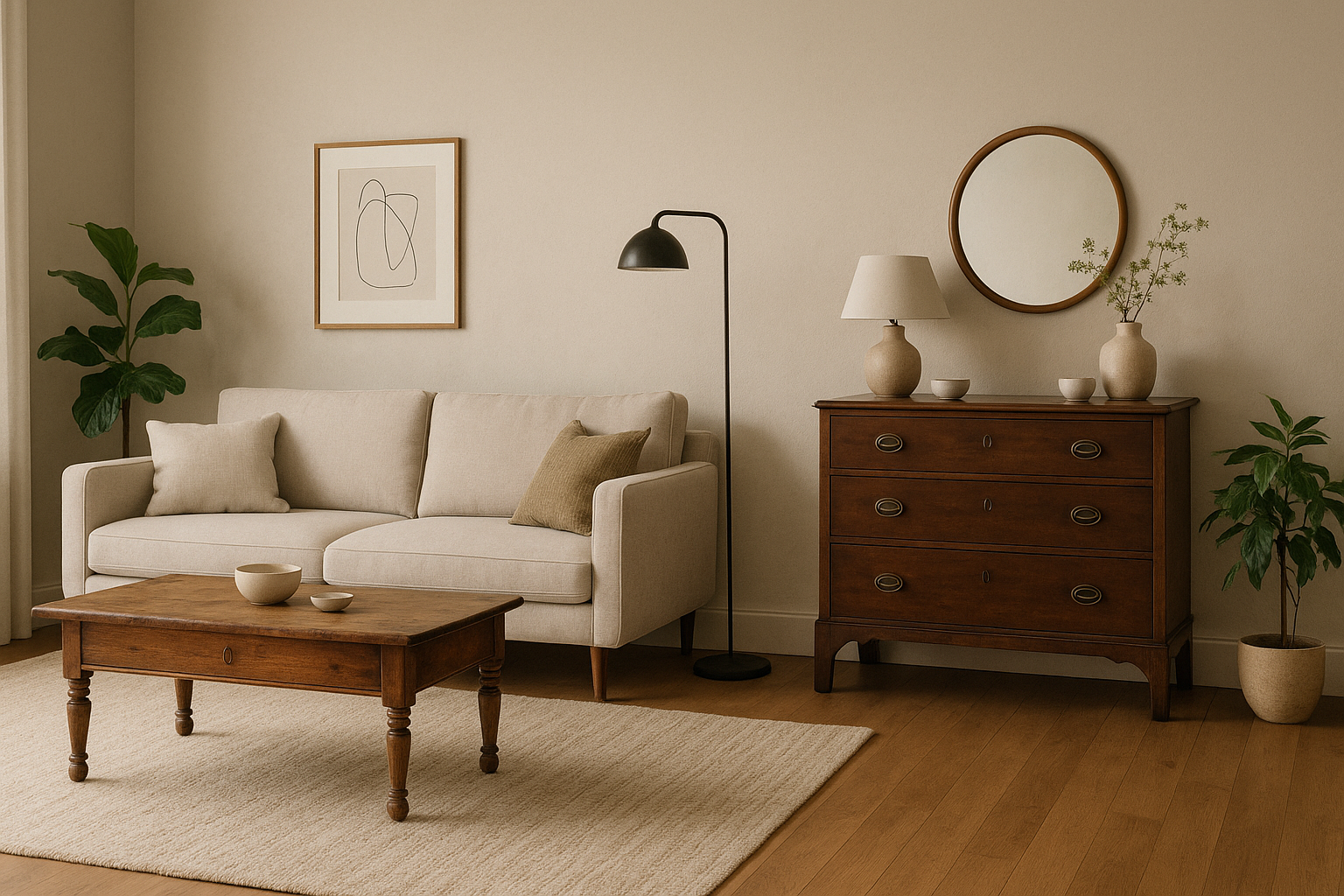 Hatékonyan kombinálni a régi és új bútorokat – az emberi agy olvasható kapcsolatokat keres a térben – hasonló formákat, ismétlődő színeket vagy a vonalak ritmusát. Ha egy helyiséget széttartó elemekkel zsúfolnak tele, csökken a koherenciája, de a vizuális „megállók” nélküli steril egyformaság ugyanilyen káros (Coburn et al., 2020) A szakértők ezért a 70/30-as szabályt javasolják: a tér körülbelül 70%-a legyen a domináns stílusé (gyakran új bútorok), a maradék 30% lehet antik vagy retro akcentus. Ez egyensúlyt teremt az olvasható és a lenyűgöző között.