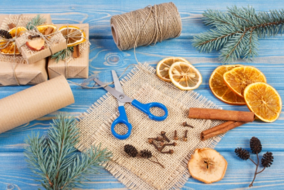 Az aszalt gyümölcsszeletek klasszikus díszítőelemnek szállítanak. Az alma, a narancs, és a citrom ideális erre a célra. Nagyon jól mutatnak a fán és az illatuk is kellemes hangulatot teremt.