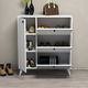 Cipősszekrény - Bellia (fehér) ideális megoldás cipőkollekciójának rendezésére és tárolására. 105 cm-es magasságával, 90 cm-es szélességével és 35 cm-es mélységével több pár cipőnek is elegendő helyet biztosít. Ez a fehér szekrény kiváló minőségű anyagból készült, amely karcálló és könnyen tisztítható. Számos polccal és nyitórendszerrel van felszerelve, amely lehetővé teszi a cipők könnyű elérését. A Bellia (fehér) cipőszekrény elegáns és praktikus kiegészítője otthonának, amely segít rendet tartani és cipőit hatékonyan rendezni.