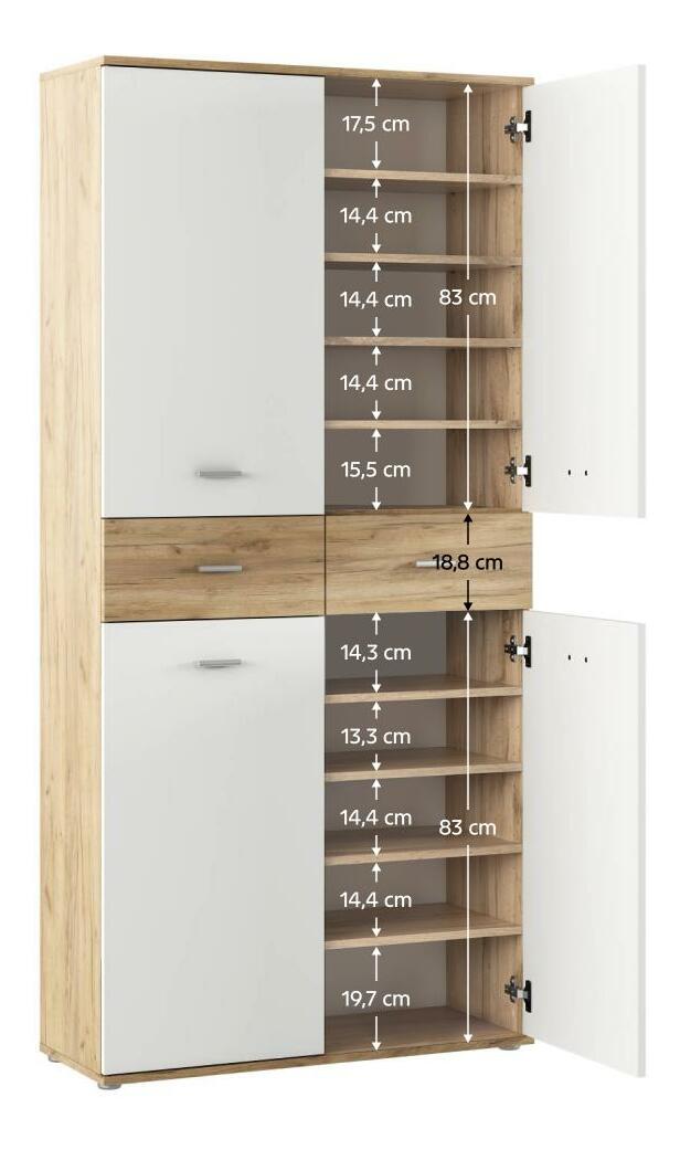 Cipőtároló (cipősszekrény) Variacion (artisan tölgy + fehér)