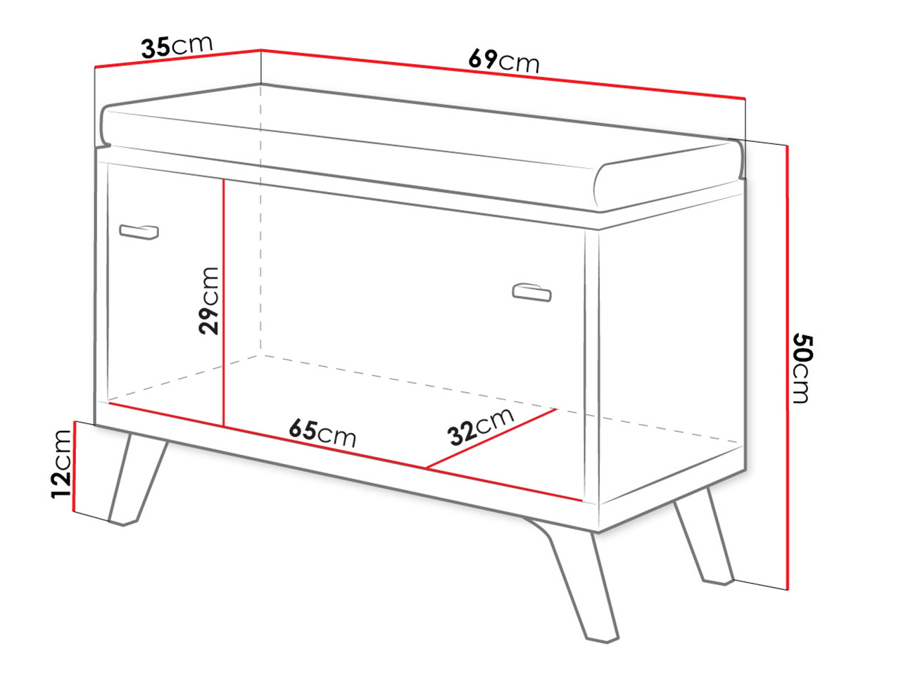 16 mm vastag laminált lemez; műanyag lábak és fogantyúk; közönséges zsanérok; PVC élek