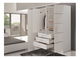 a szekrény belsejében ruhaakasztók és polcok találhatók