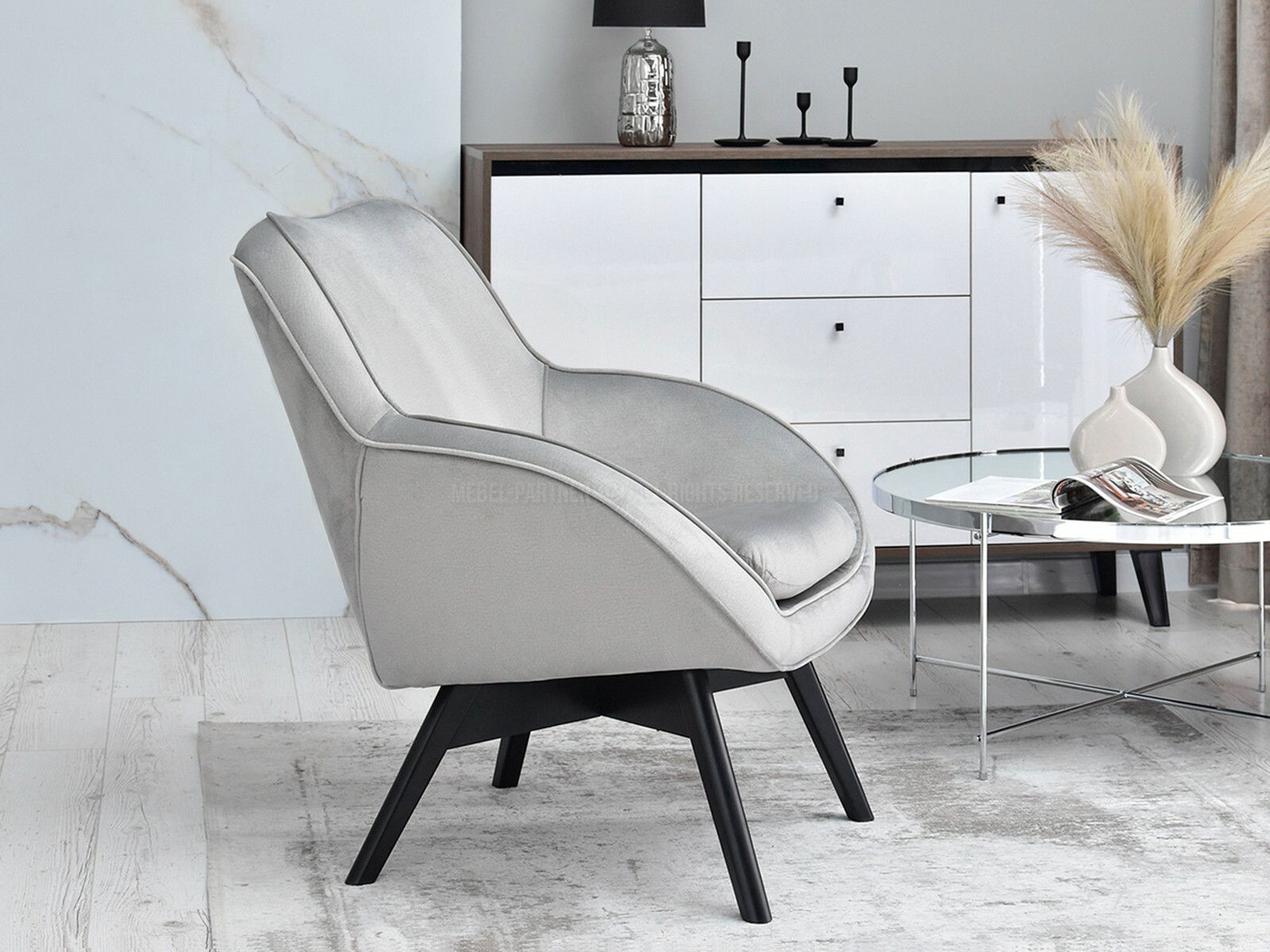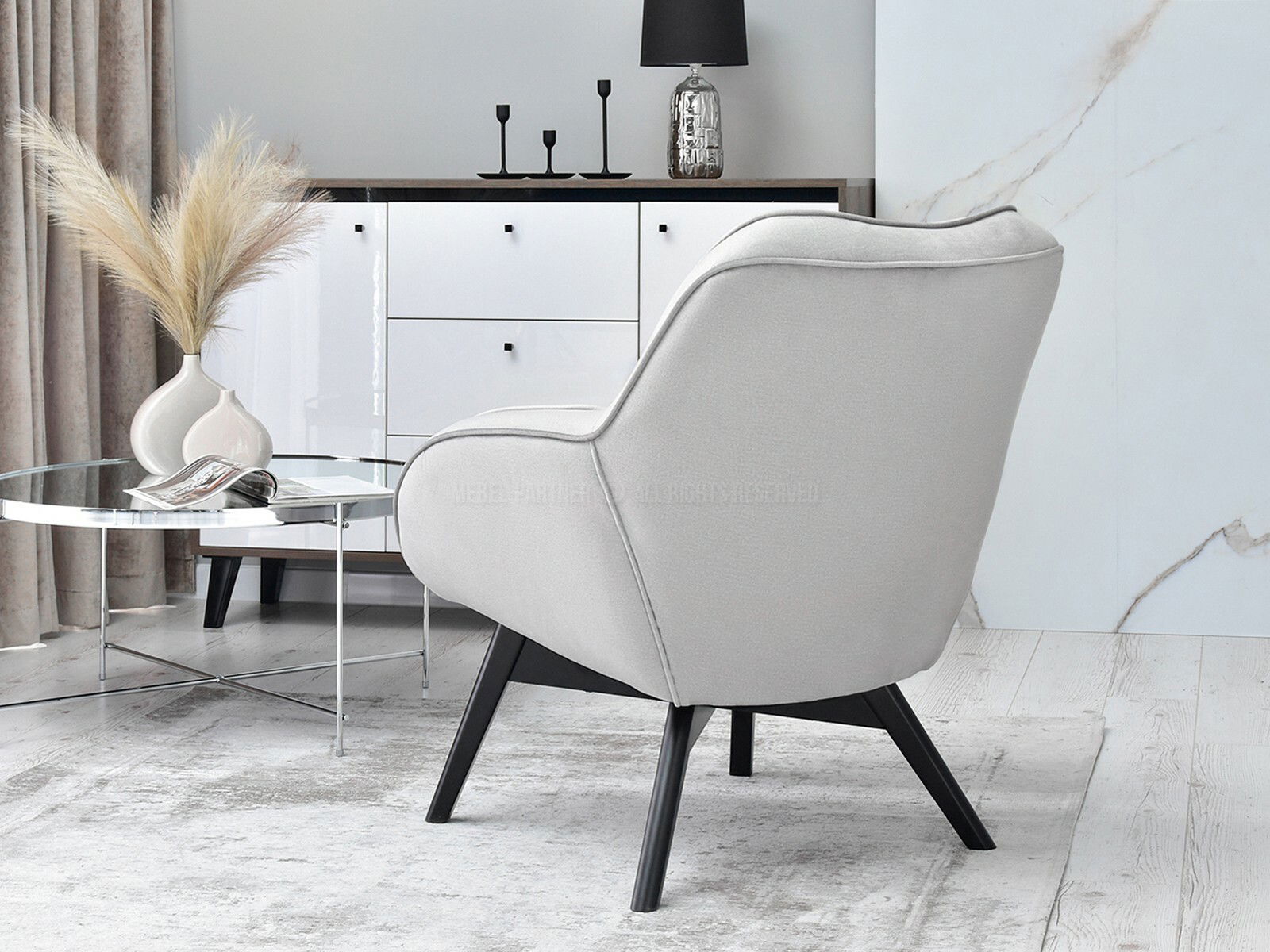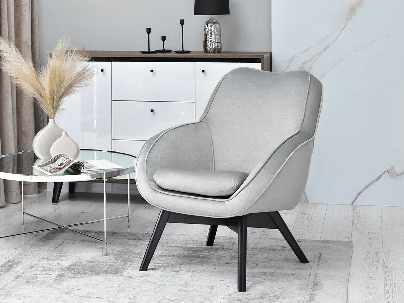 Dizájnos fotel Merch (szürke + fehér)