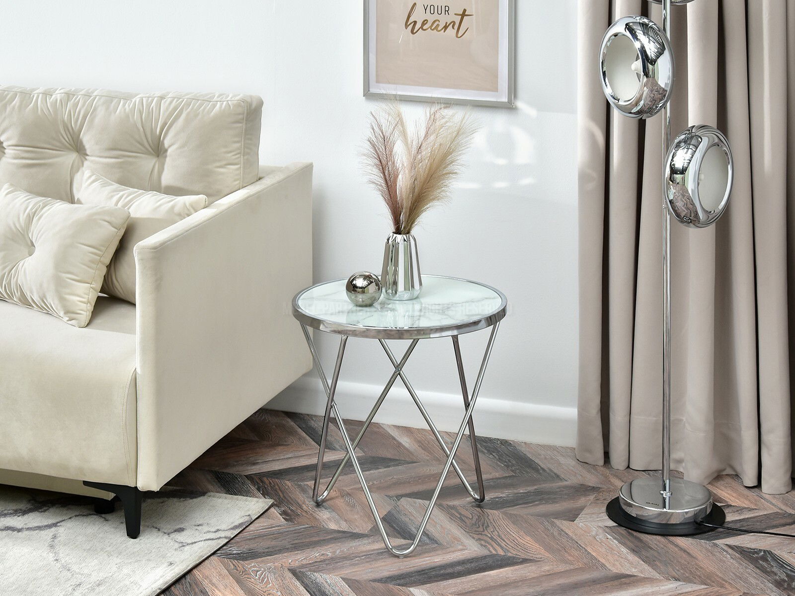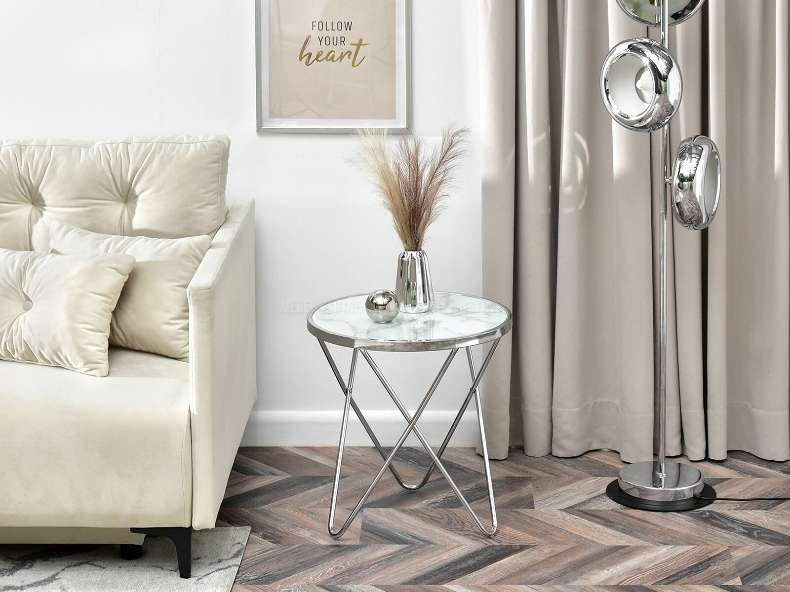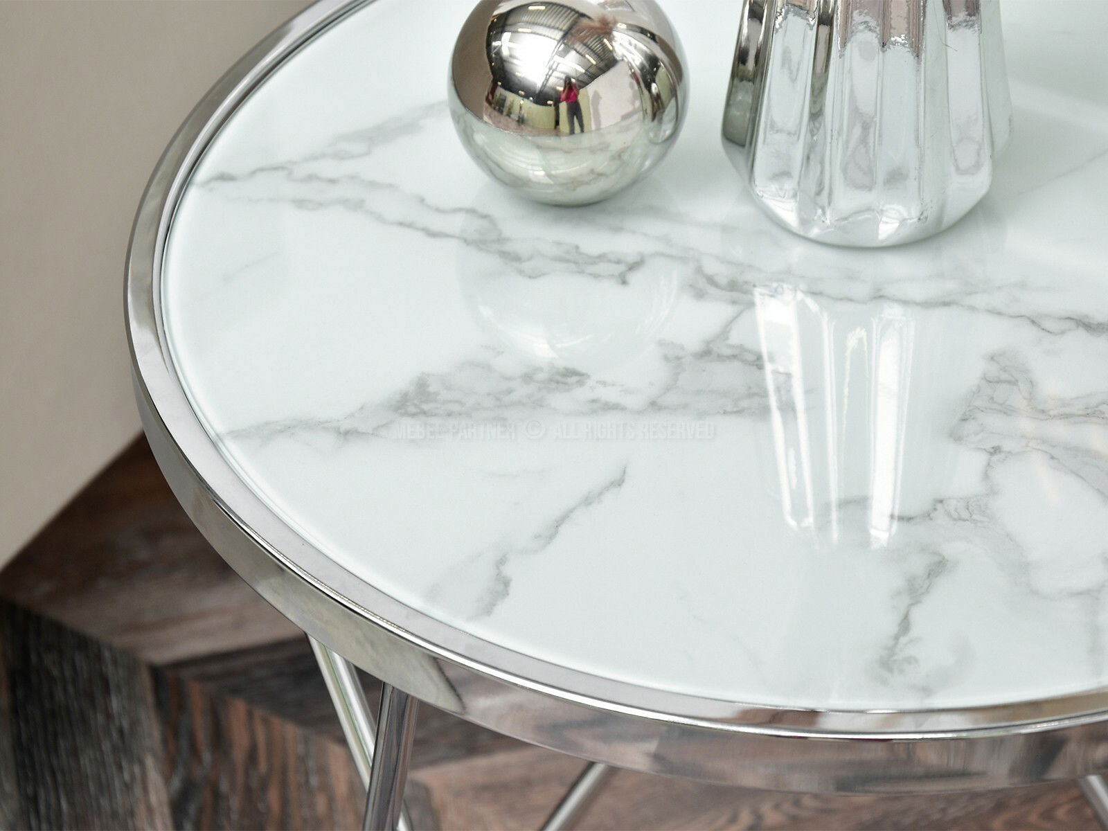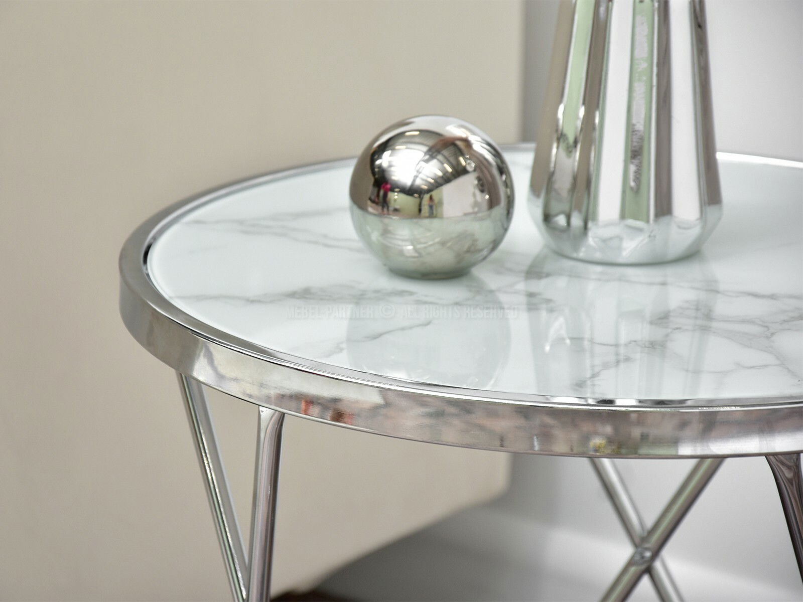 Dohányzóasztal Armin S (fehér márvány + króm)