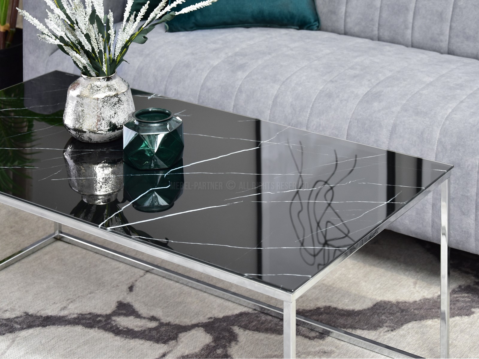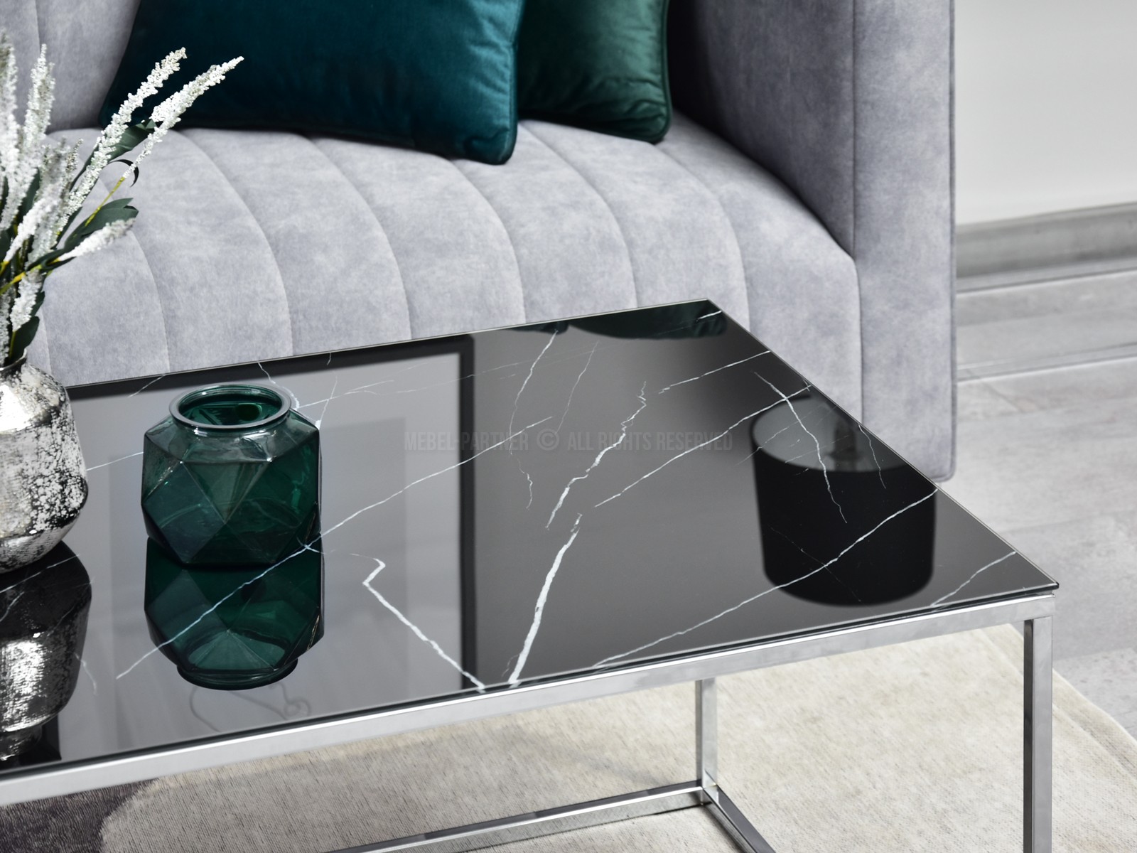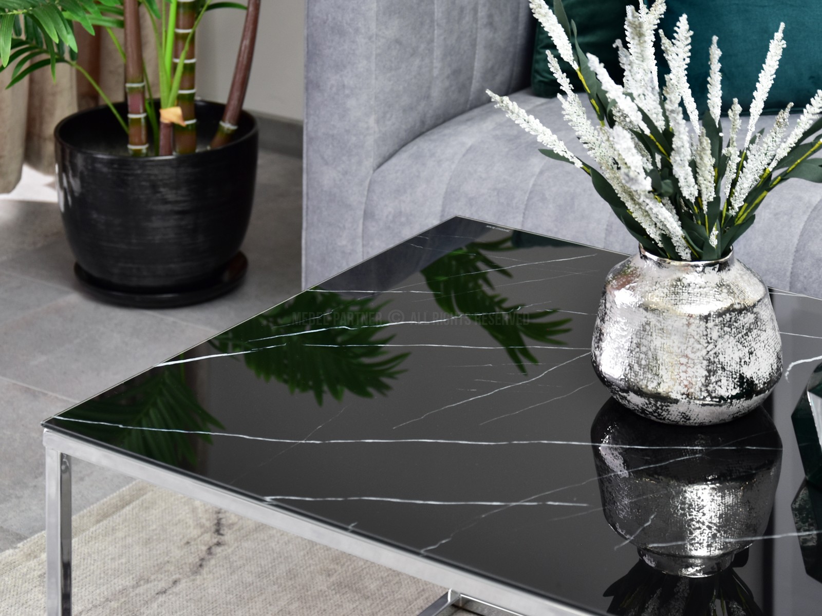 Dohányzóasztal Bella Xl (fekete márvány + króm)