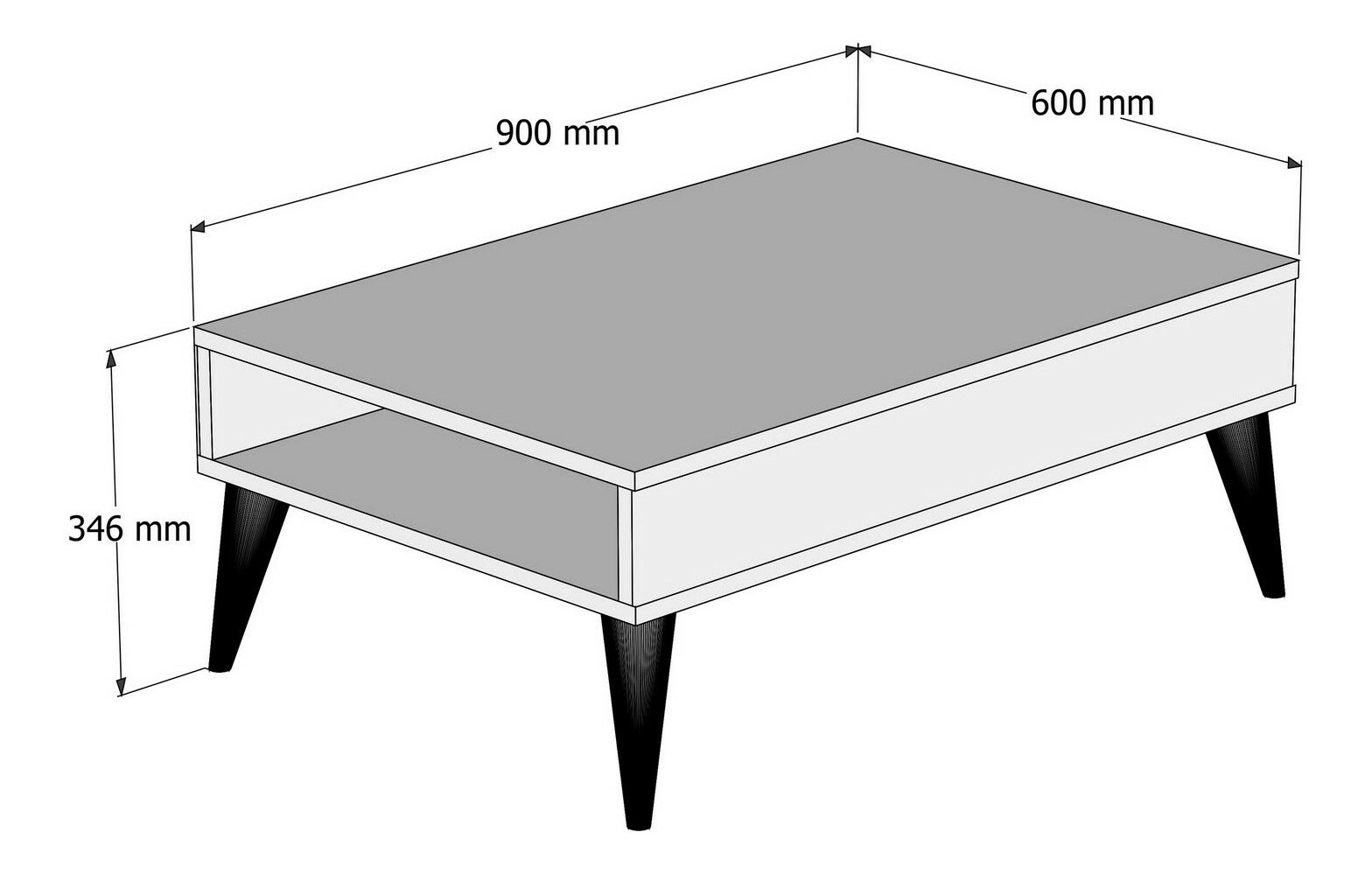 szélesség: 90 cm, magasság : 34,6 cm, mélység: 60 cm