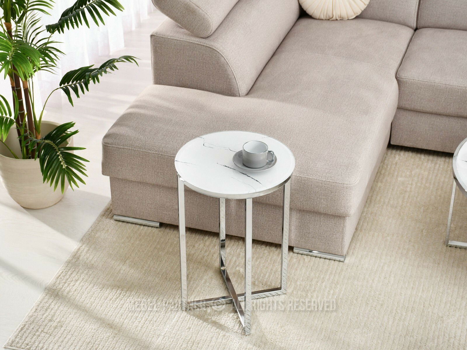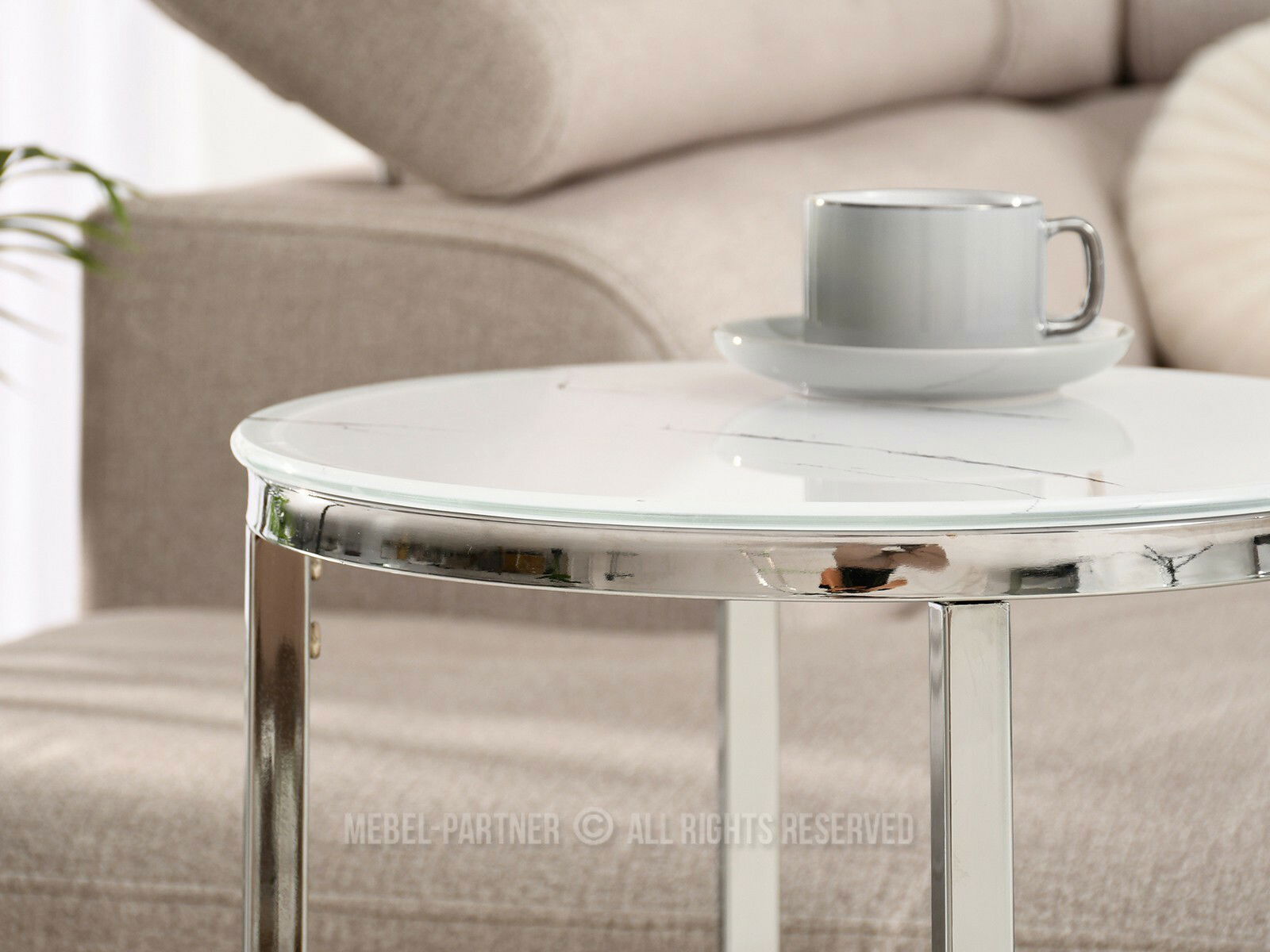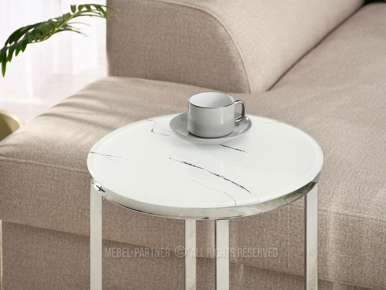 Dohányzóasztal Calvis (fehér márvány + króm)