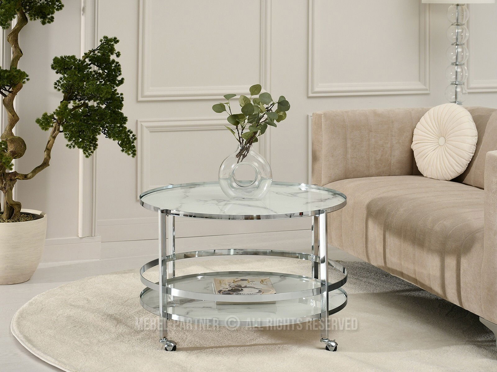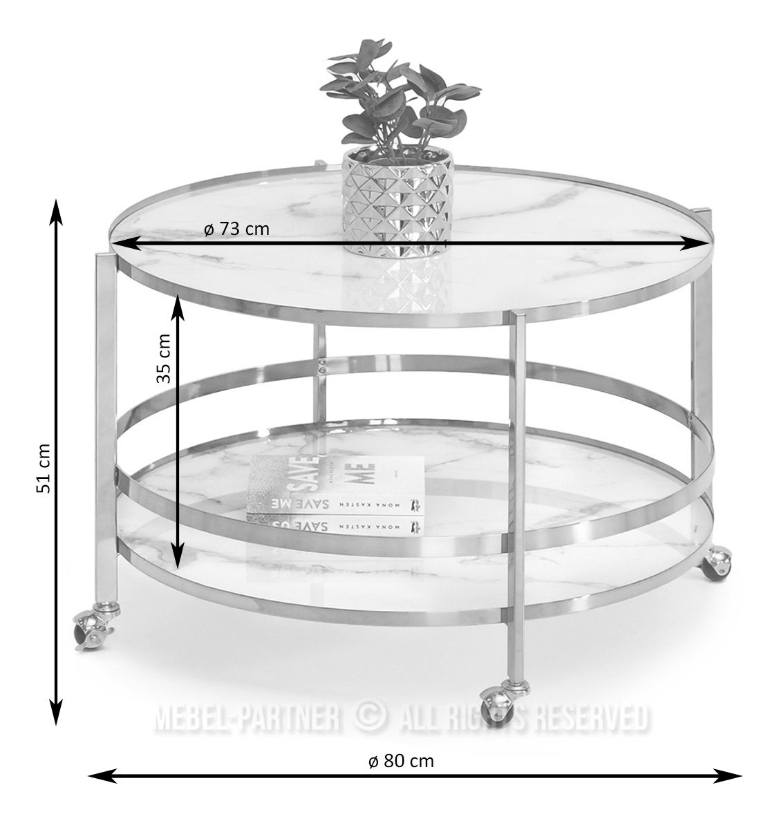 Dohányzóasztal Chici (fehér márvány + króm)