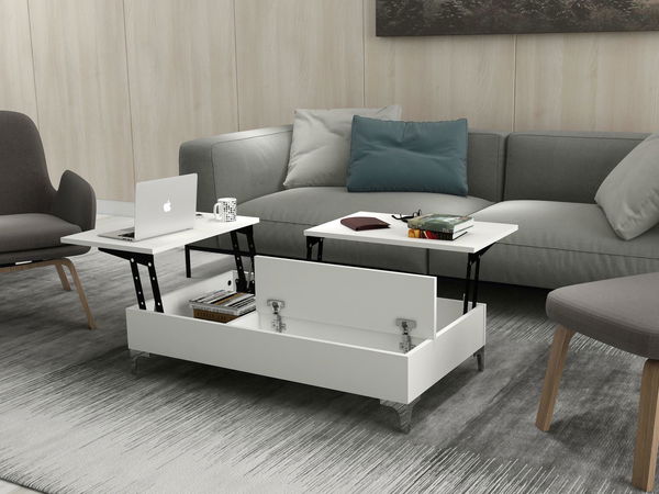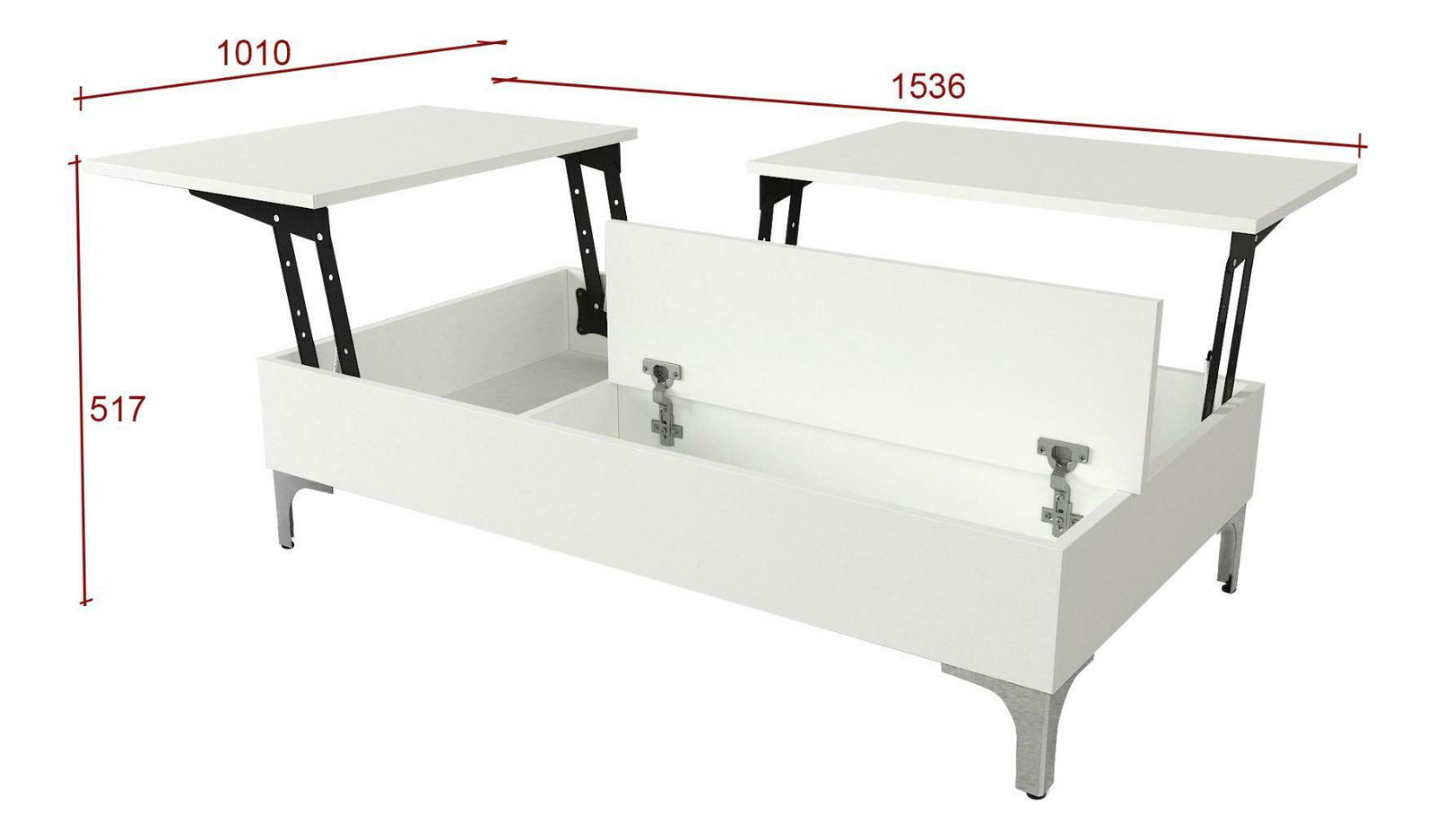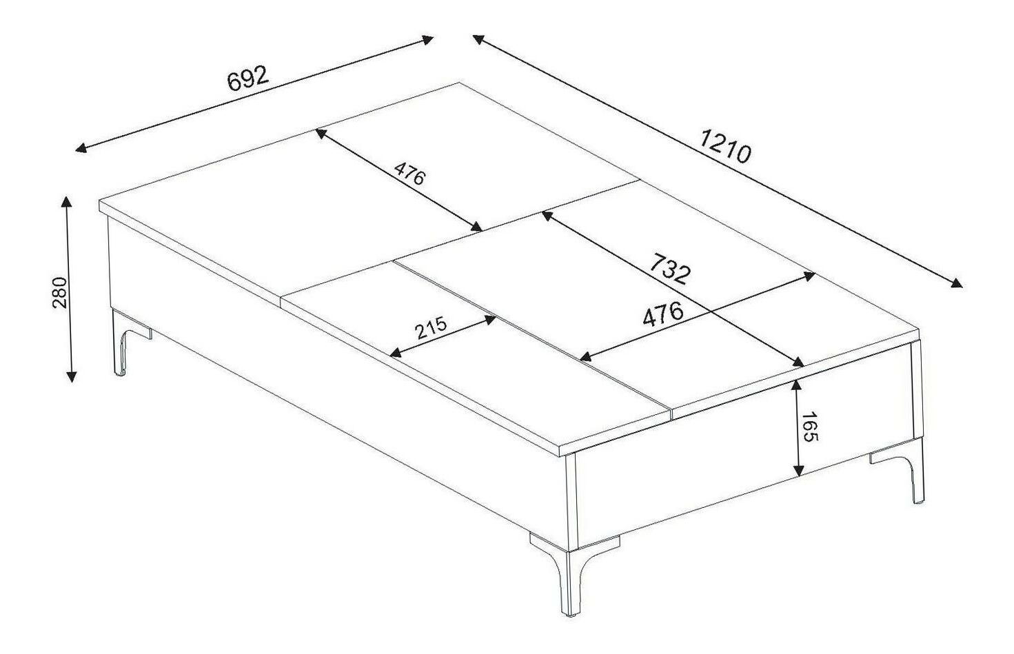 Vastagság: 18 mm. Szélesség: 121 cm. Magasság: 28 cm. Mélység: 69,2 cm. Nyitott asztal méretei: Szélesség: 153,6 cm. Magasság: 51,7 cm. Mélység: 101 cm. Polc szélessége: Szélesség: 73,2 cm. Magasság: 16,5 cm. Mélység: 21,5 cm. Lábak magassága: 11,5 cm