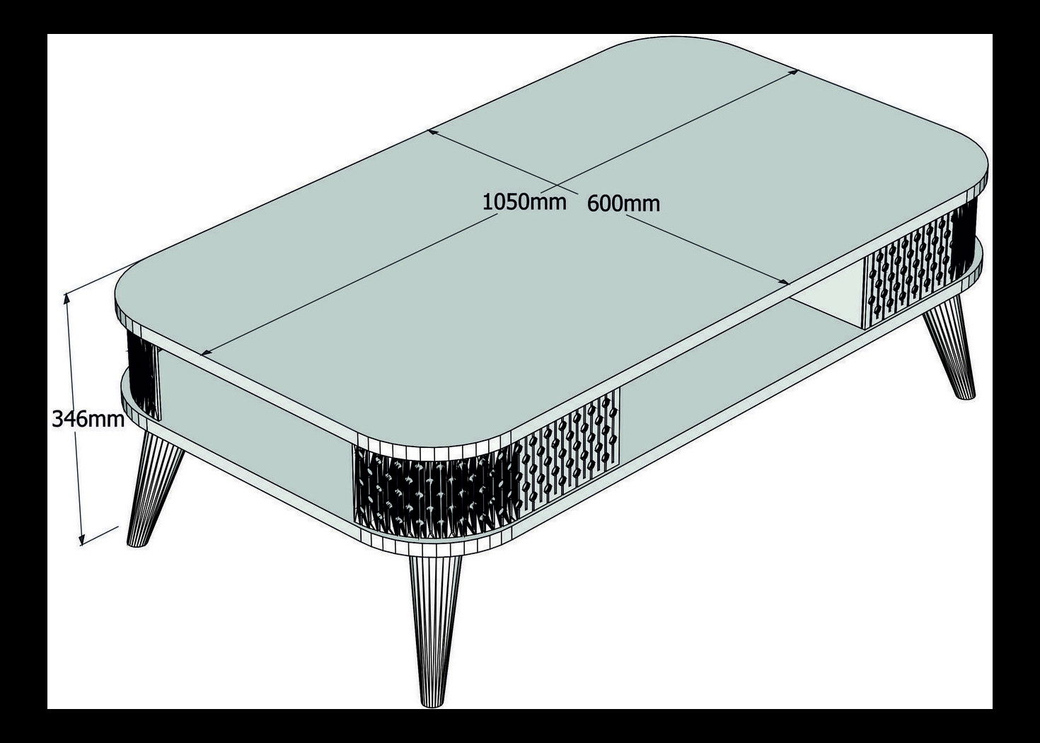 szélesség: 105 cm, magasság : 34,6 cm, mélység: 60 cm