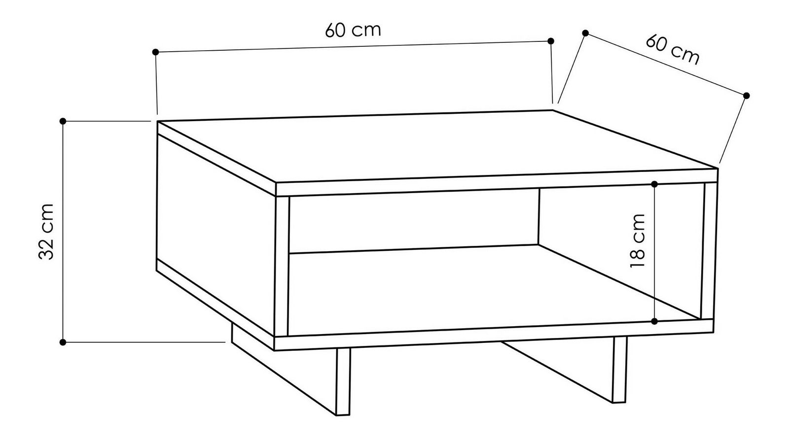 szélesség: 60 cm, magasság : 32 cm, mélység: 60 cm
