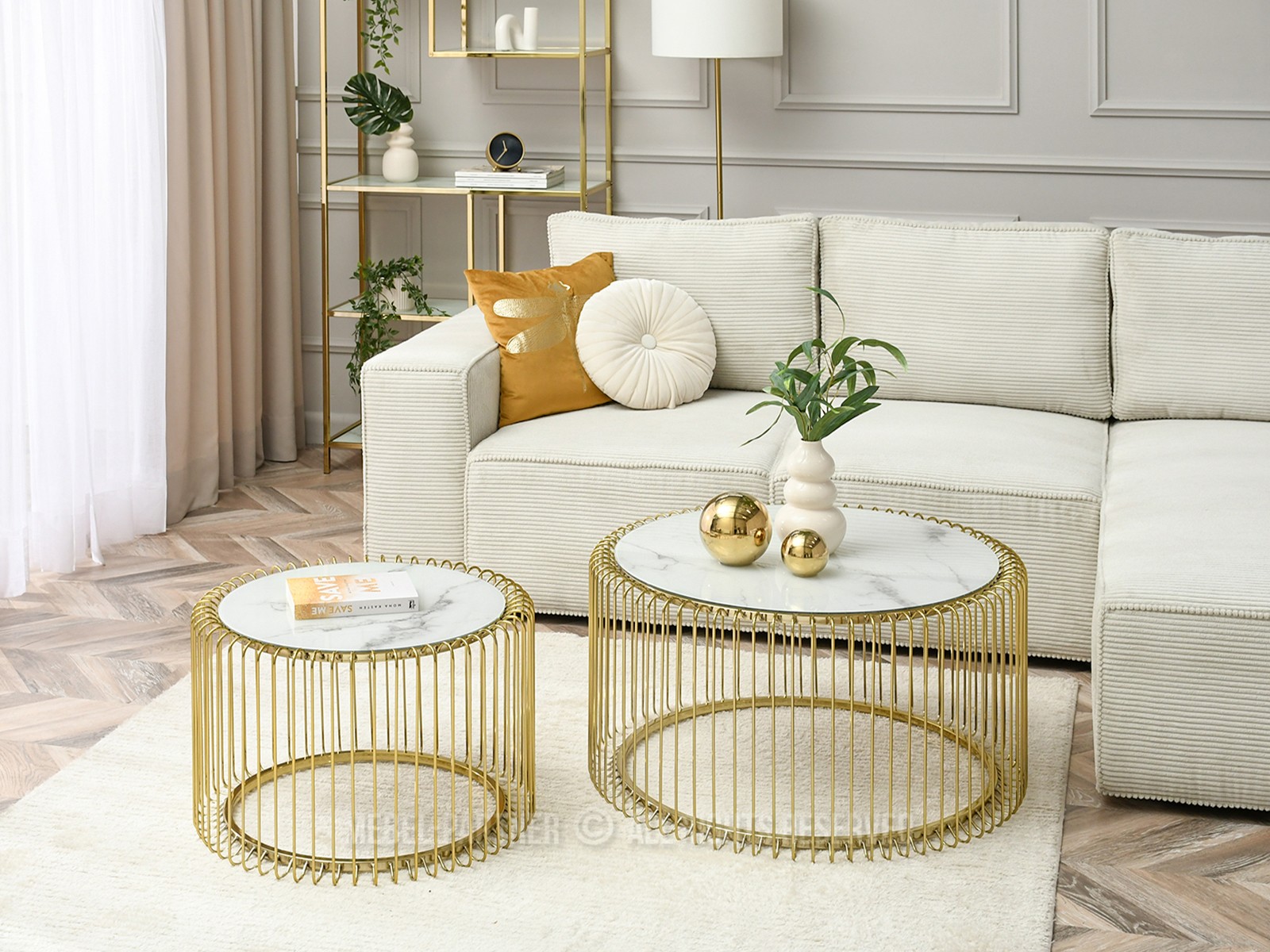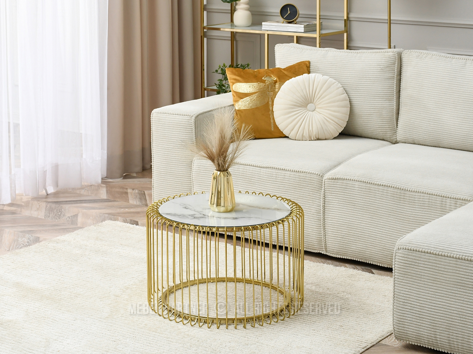 Dohányzóasztal Nils M (fehér márvány + arany)