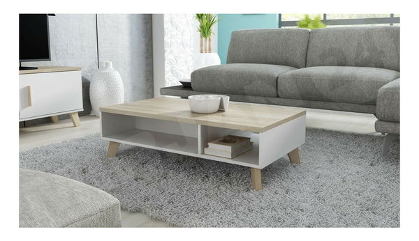 Dohányzóasztal Solara 110 (brilliáns fehér matt + sonoma tölgy)