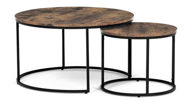 MutasdEgy 2 darabos konferencia-, kikötői vagy lerakóasztal szett nemcsak praktikusságot, variálhatóságot, hanem ipari bájt is visz otthonába. Az asztalokat egyenként is elhelyezheti a belső térben, így érdekes tárolóelemeket hozhatnak létre különböző magasságokban. Vagy együtt is kihúzhatja őket, így egy nagy, 8-as alakú tárolófelületet hozhat létre. Nagy előnye, hogy az asztalok egymásba is illeszthetők, amit takarítás, tárolás vagy több helyre való igény esetén értékelni fog. És nemcsak a fent említett praktikussággal, hanem letisztult, tiszta és időtlen dizájnjukkal is lenyűgözik majd őket. A régi fahatású, kerek MDF lapokat harmonikusan kiegészíti a kerületükön fekete matt porfestett fémszerkezet. Ez formálja a lábakat és összességében megerősíti az asztalokat. Az alsó lécen fekete műanyag csúszótalpak találhatók, amelyek megakadályozzák a padlófelület sérülését az asztalok mozgatásakor. Az 1,5 cm vastag asztallap átmérője kellemesen 80 cm, egy kisebb 50 cm, az asztalok magassága pedig 46 és 41 cm4. A szerkezet négyzet alakú keresztmetszetű. Egy asztal teherbírása akár 30 kg is lehet.
