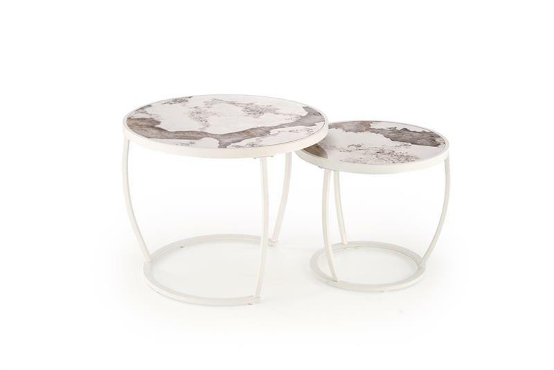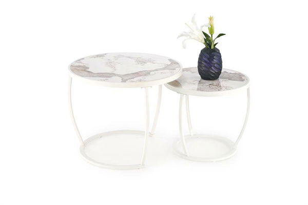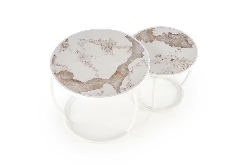 Dohányzóasztal szett (2 db.) Inesz (bézs márvány + fehér)