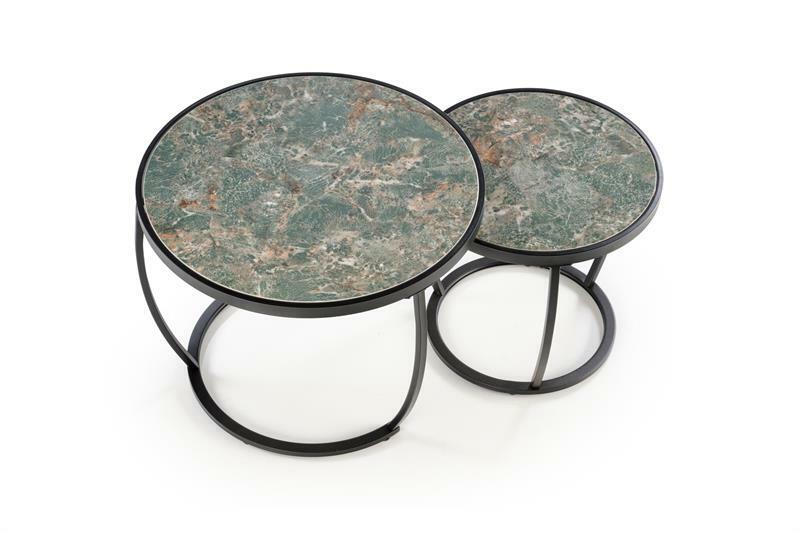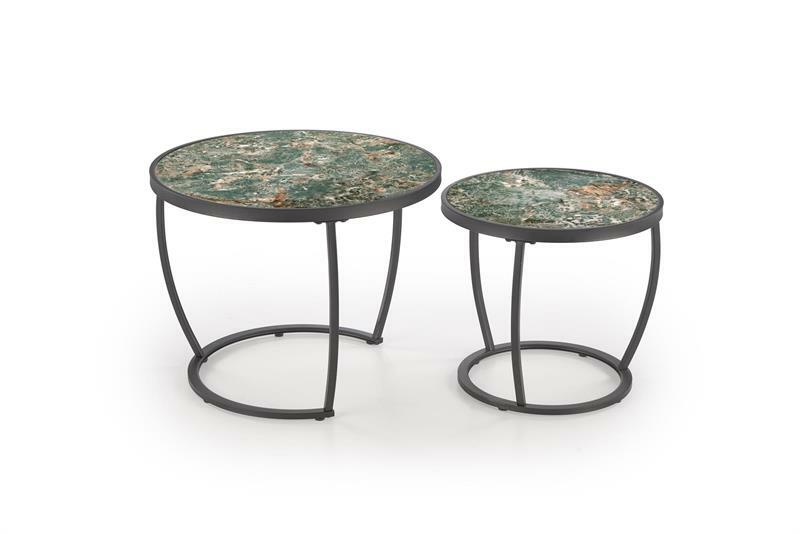 Dohányzóasztal szett (2 db.) Inesz (zöld márvány + fekete)