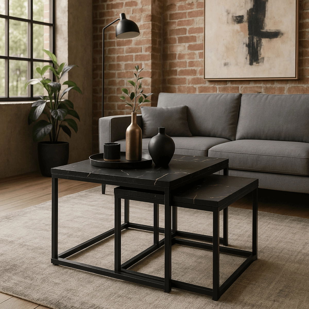 Dohányzóasztal szett (2 db.) Jospin (fekete márvány)