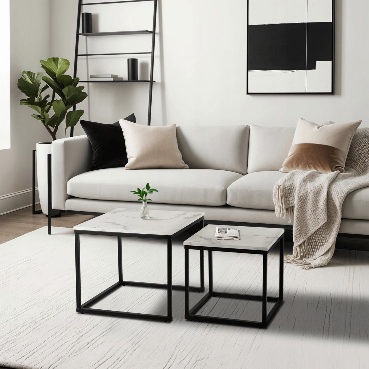 Dohányzóasztal szett (2 db.) Ocupa (fehér + fekete márvány)