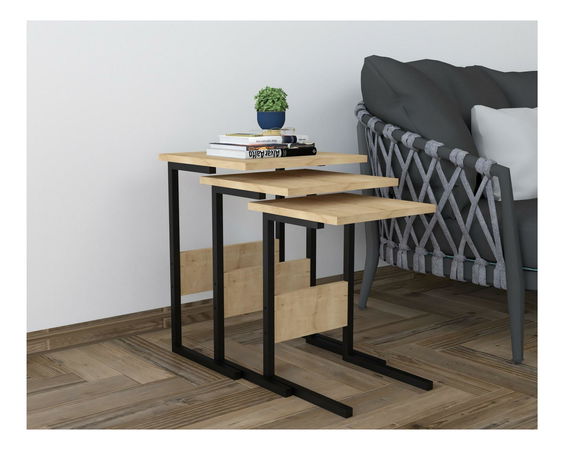 Dohányzóasztal szett (3 db.) Bameni (fekete + zafír tölgy)