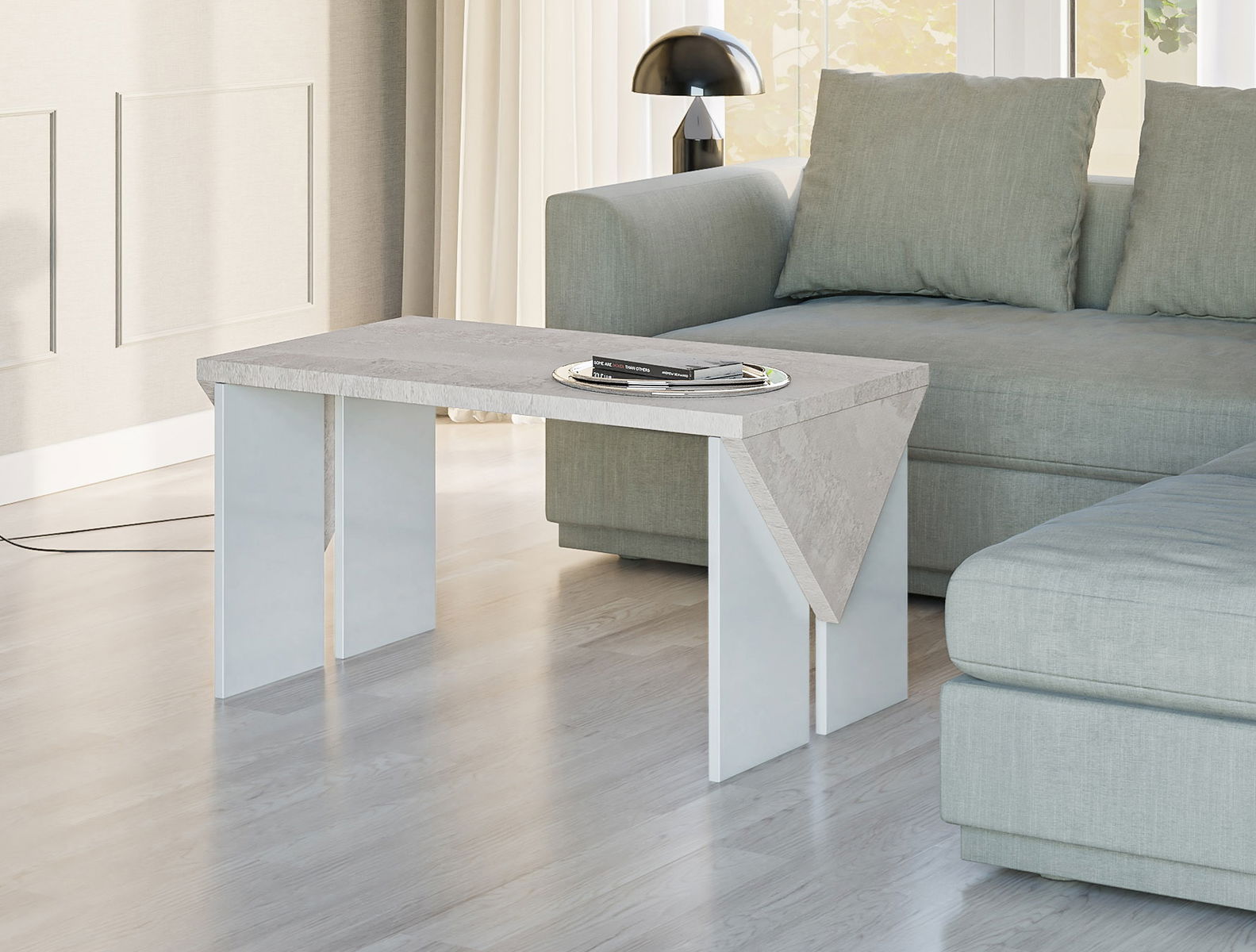 Dohányzóasztal Tarni (világosszürke + fényes fehér)