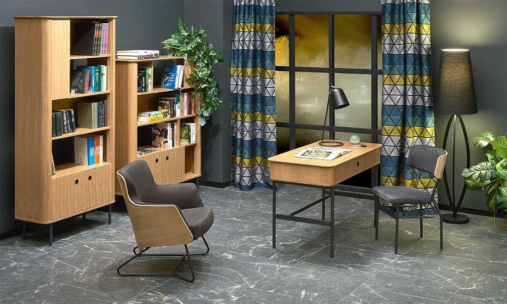 A natúr tölgy és fekete kombinációjában készült Sommer 1 dolgozószoba modern és egyszerre otthonos megjelenésű. Az elegánsan kialakított Sommer B7 irodai szék ergonomikus formájának és masszív fém vázának köszönhetően kényelmes ülést biztosít munka közben. A szék dizájnja tökéletesen kiegészíti a világos fa elemekkel teli belső teret, és harmonikus munkakörnyezetet teremt, amely alkalmas a mindennapi használatra.