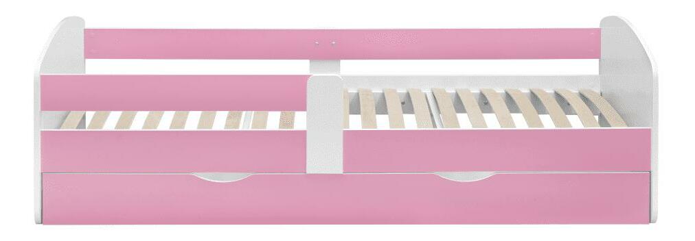 Egyszemélyes ágy 80 cm Carecen (rózsaszín + fehér) (ágyráccsal) (tárolóhellyel)