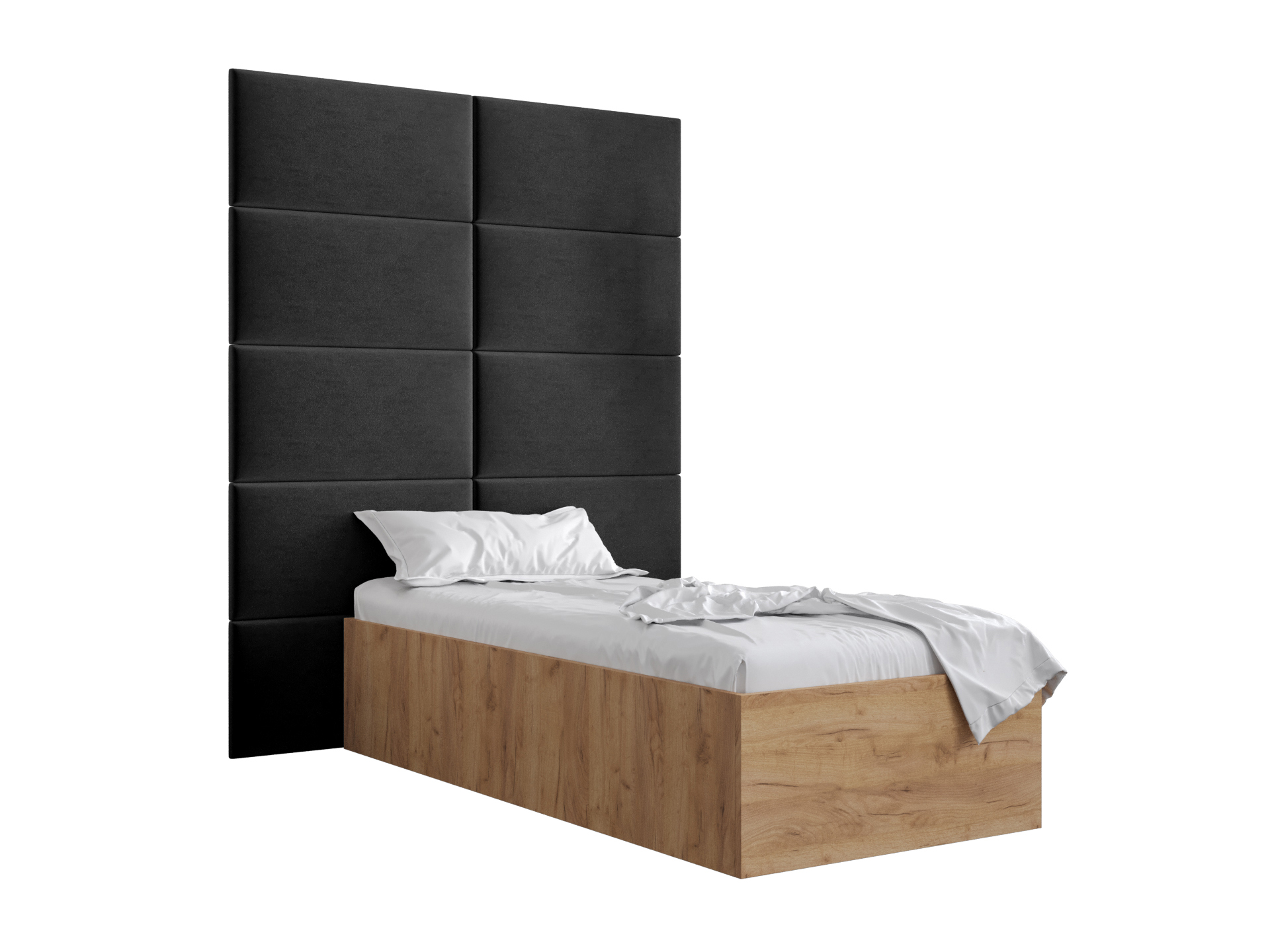 Egyszemélyes ágy kárpitozott fejtámlával 90 cm Brittany 1 (arany craft tölgy + fekete) (ágyráccsal)