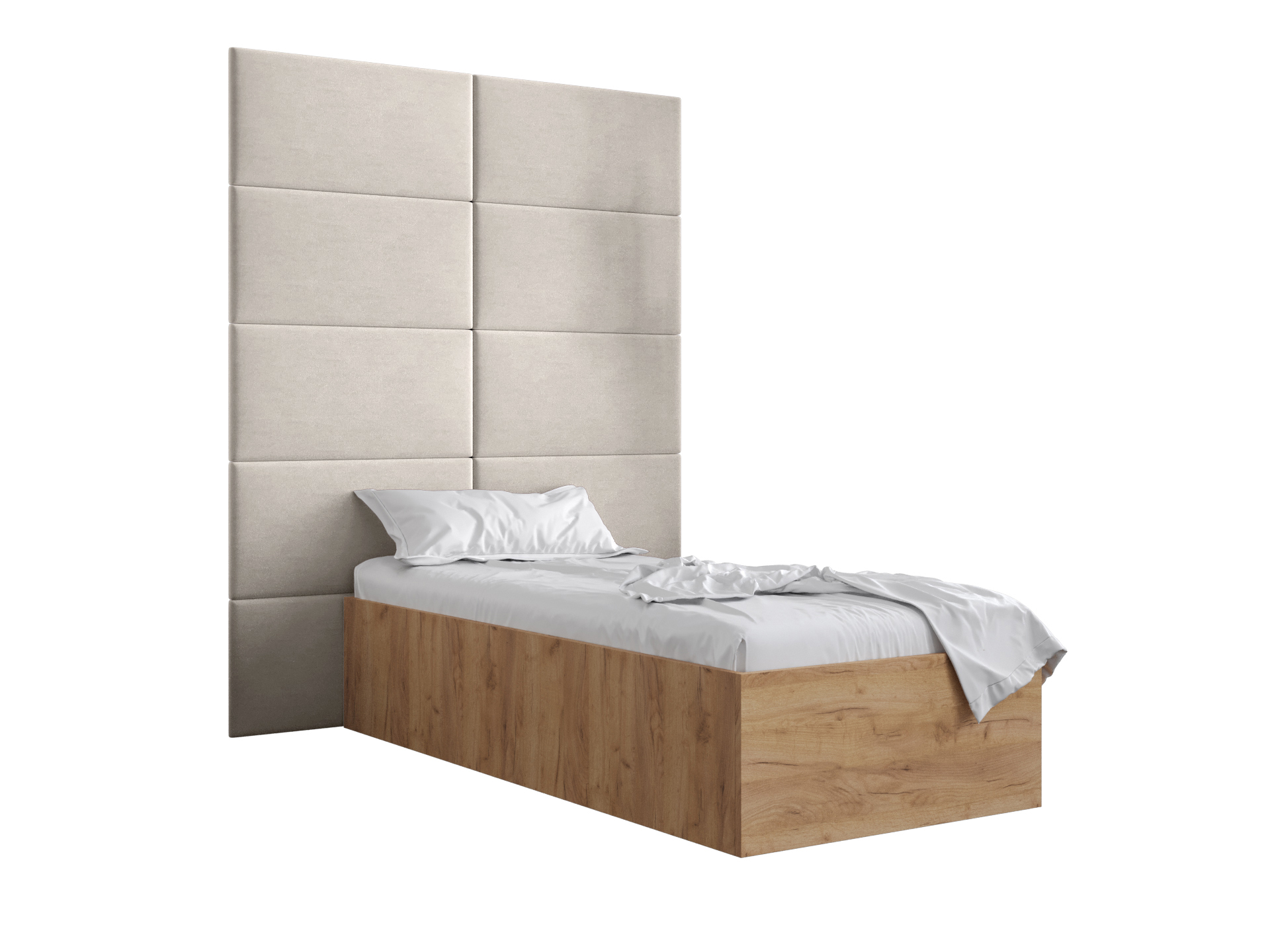 Egyszemélyes ágy kárpitozott fejtámlával 90 cm Brittany 1 (arany craft tölgy + krém) (ágyráccsal)