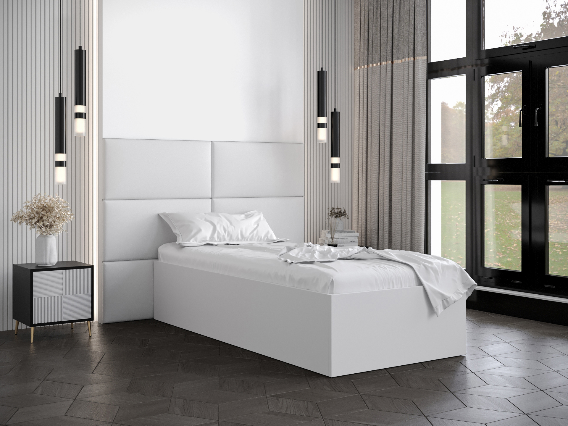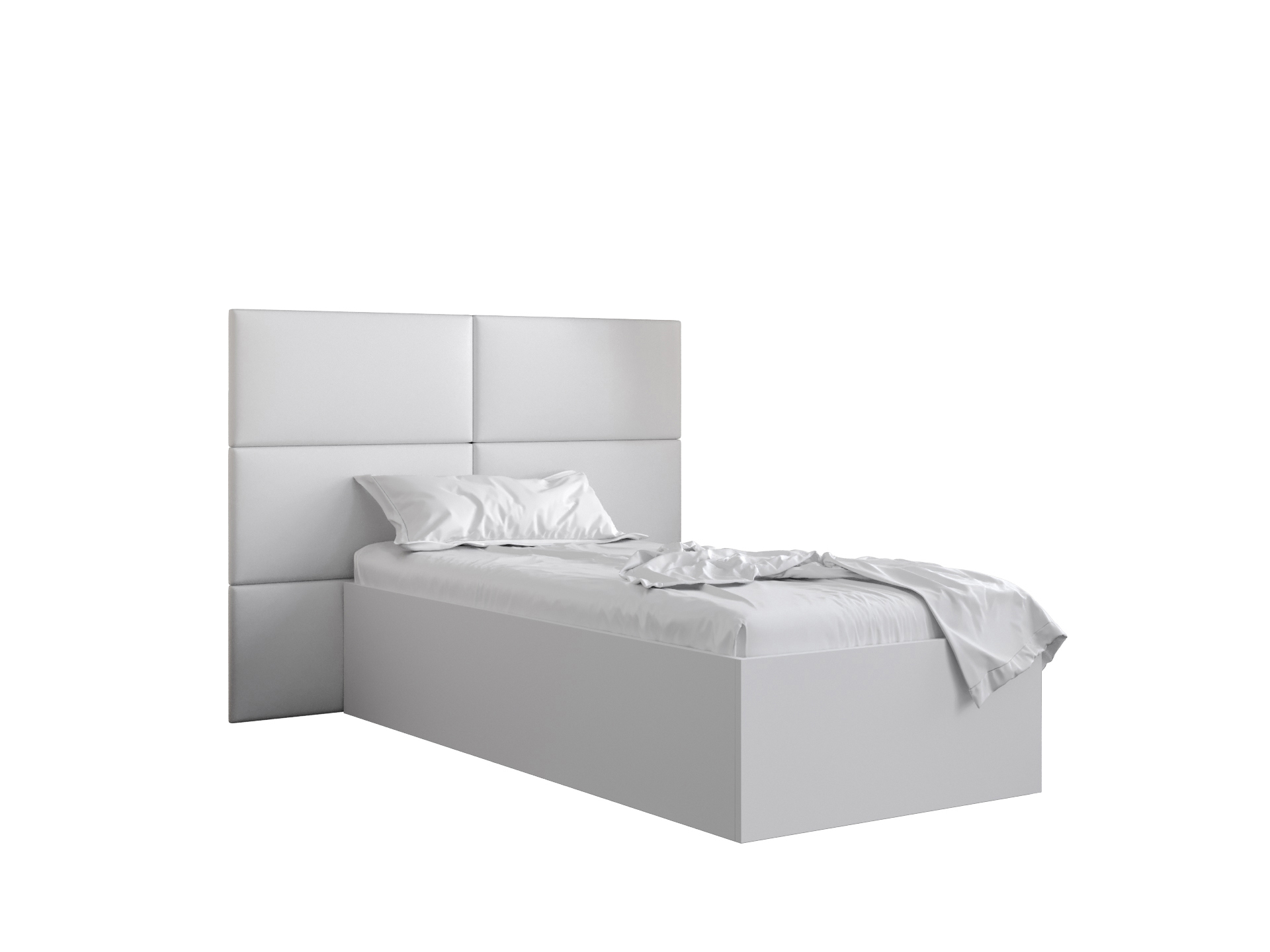 Egyszemélyes ágy kárpitozott fejtámlával 90 cm Brittany 2 (matt fehér + fehér) (ágyráccsal)