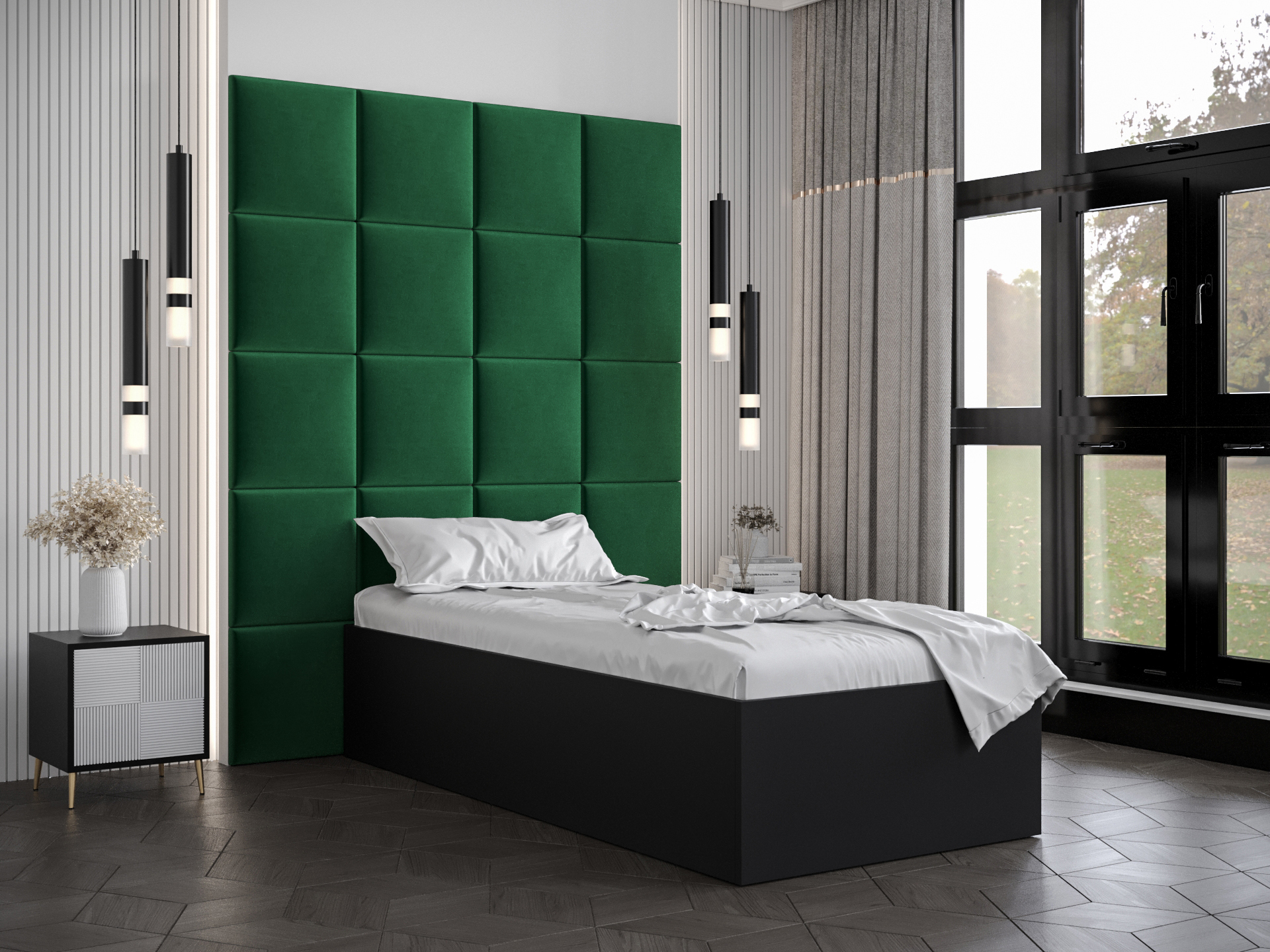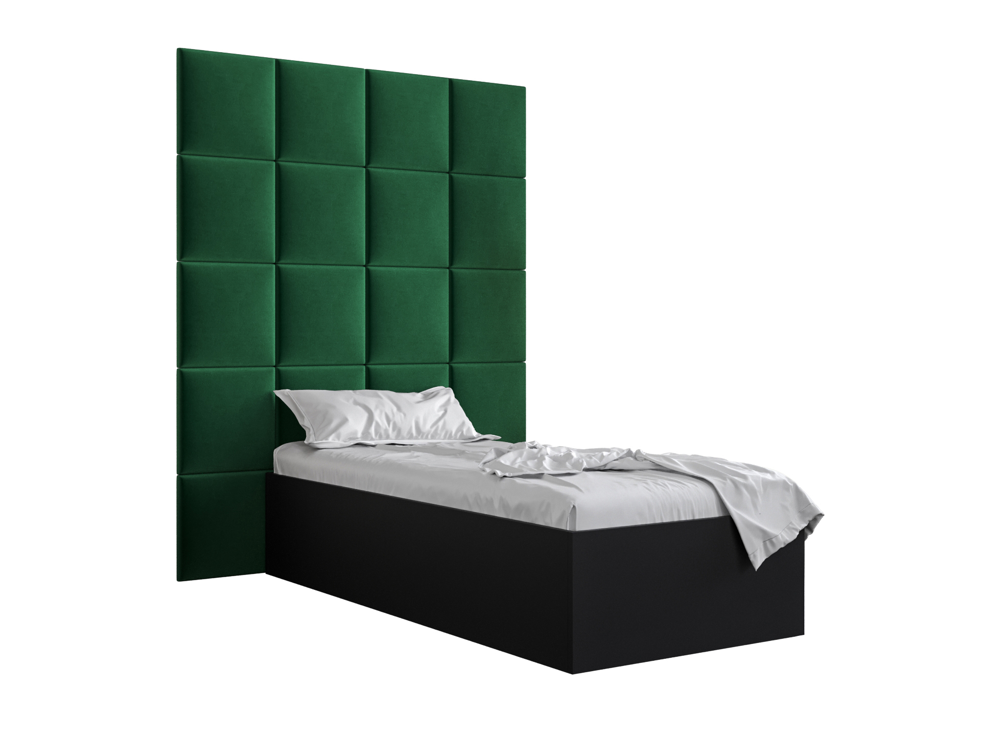 Egyszemélyes ágy kárpitozott fejtámlával 90 cm Brittany 3 (matt fekete + zöld) (ágyráccsal)