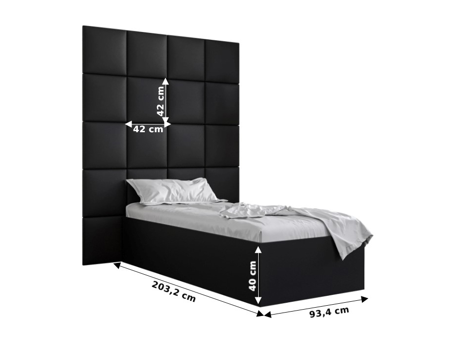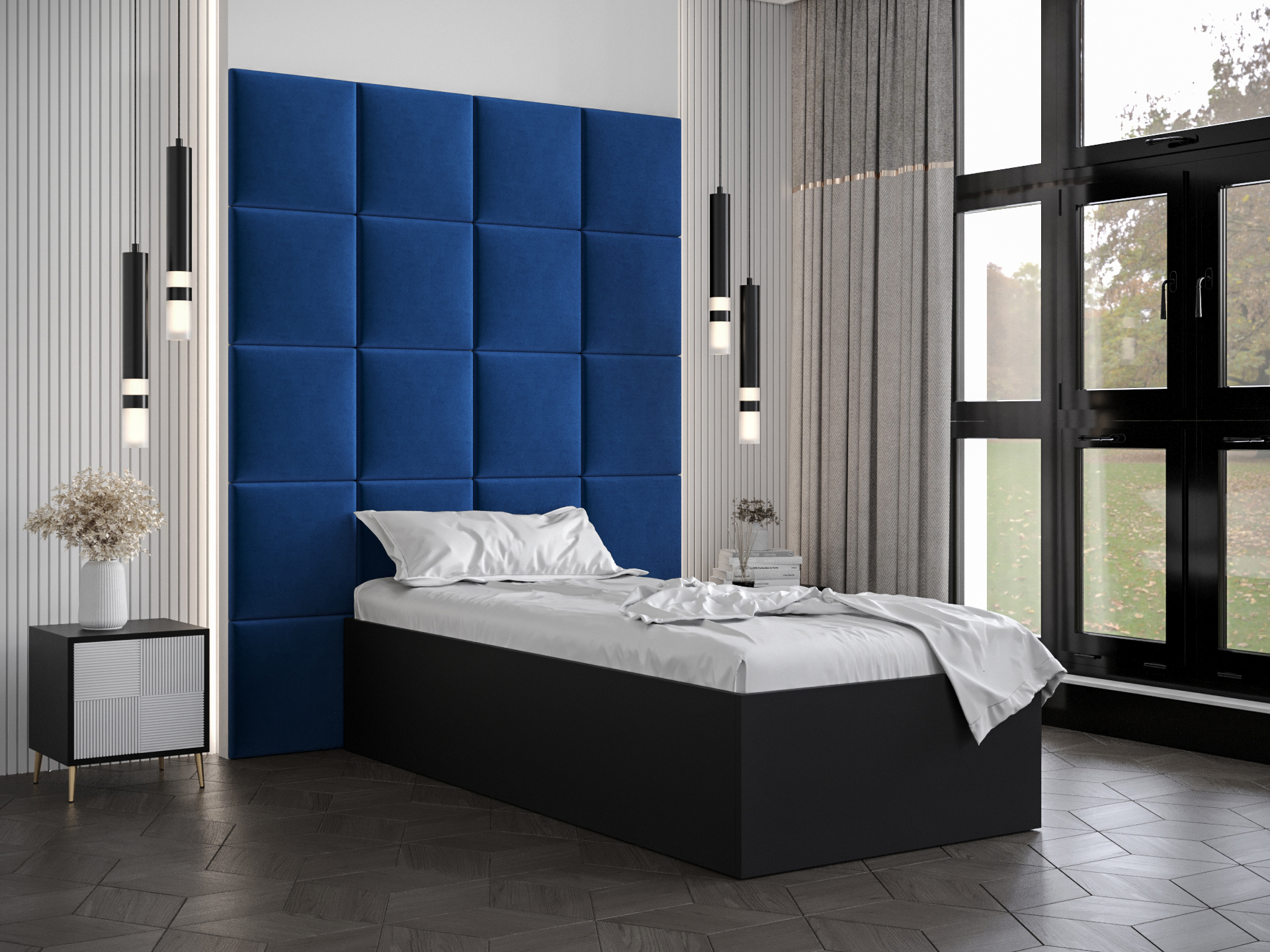 Egyszemélyes ágy kárpitozott fejtámlával 90 cm Brittany 3 (matt fekete + kék) (ágyráccsal)