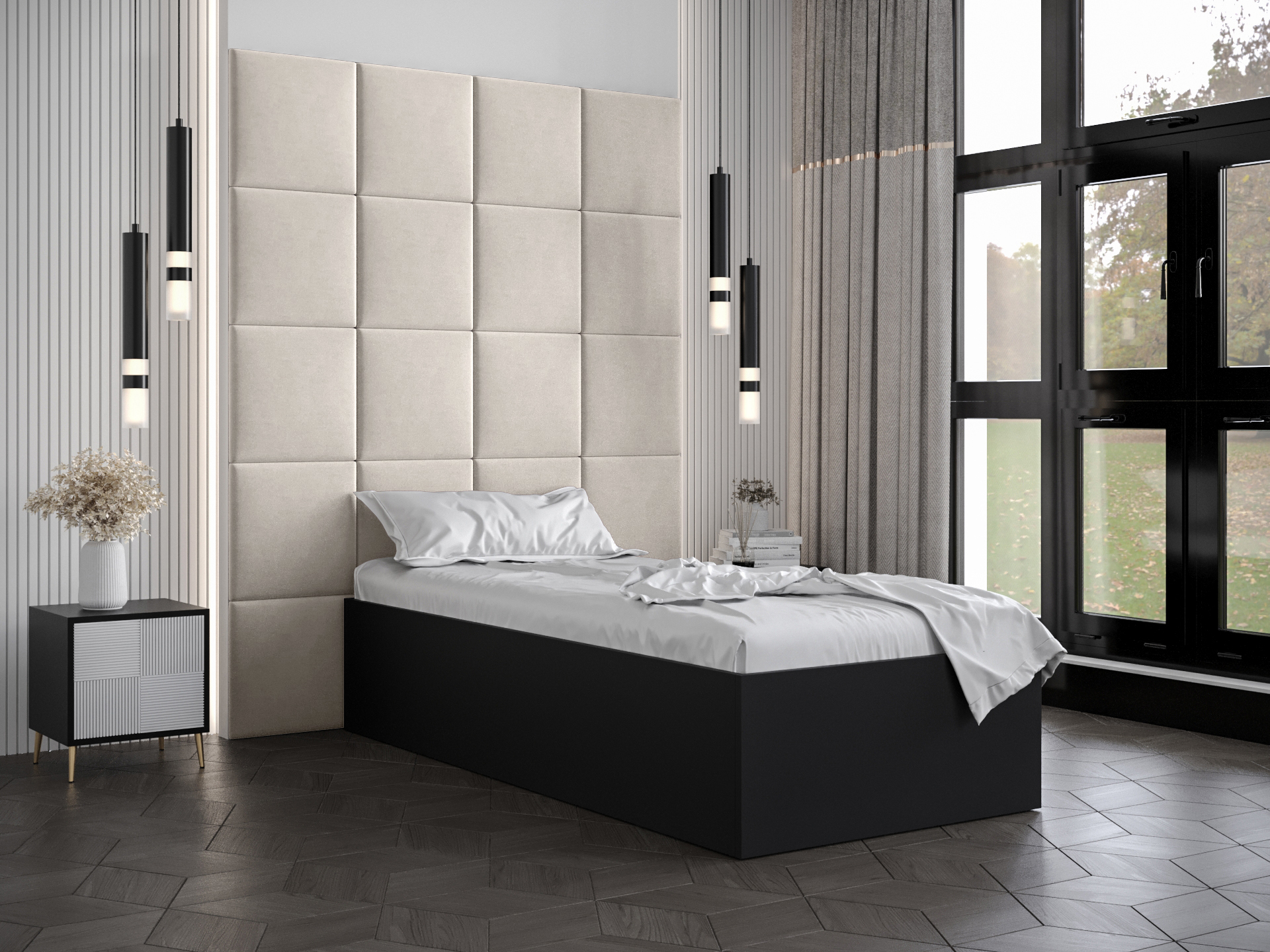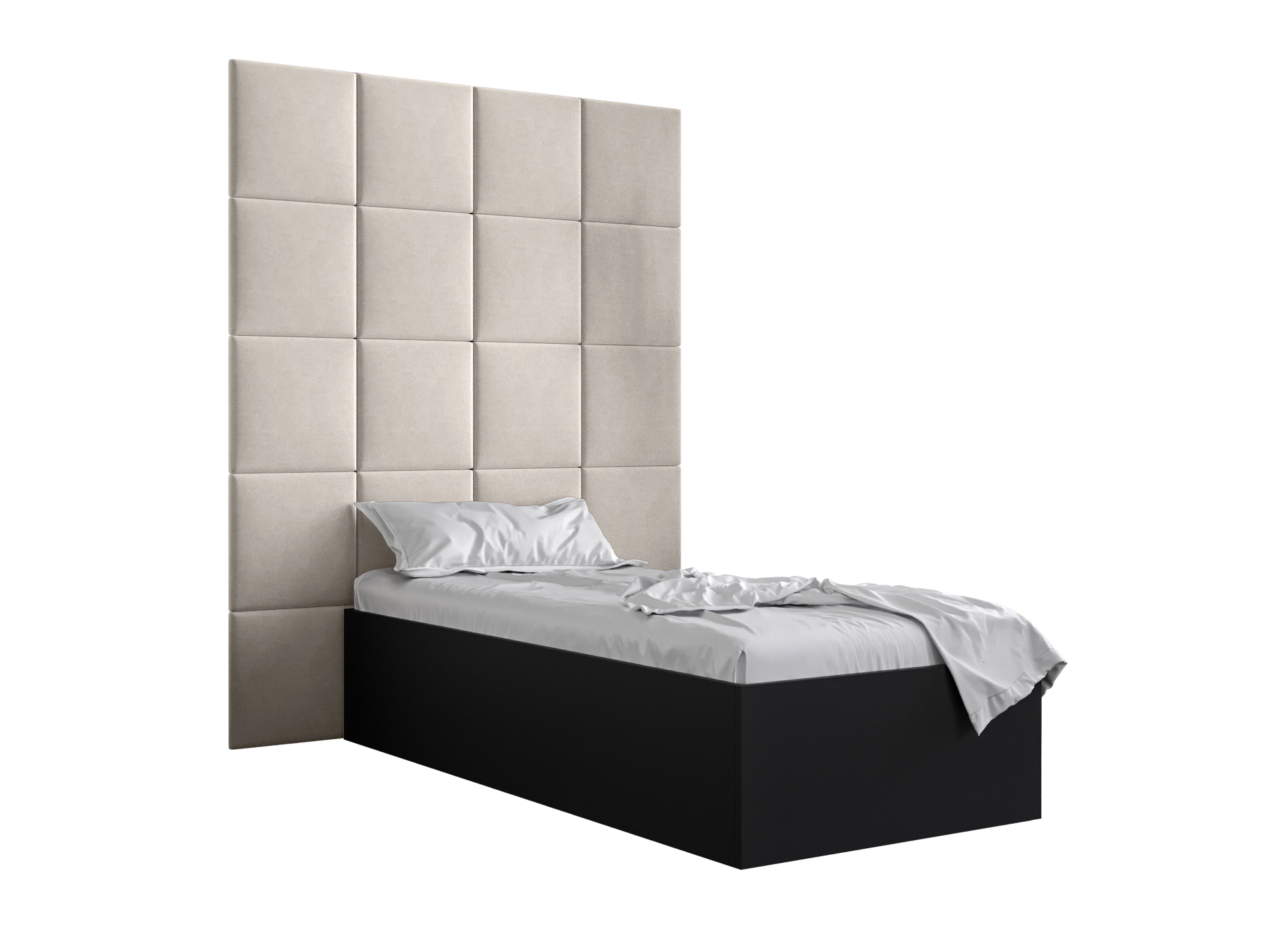 Egyszemélyes ágy kárpitozott fejtámlával 90 cm Brittany 3 (matt fekete + krém) (ágyráccsal)