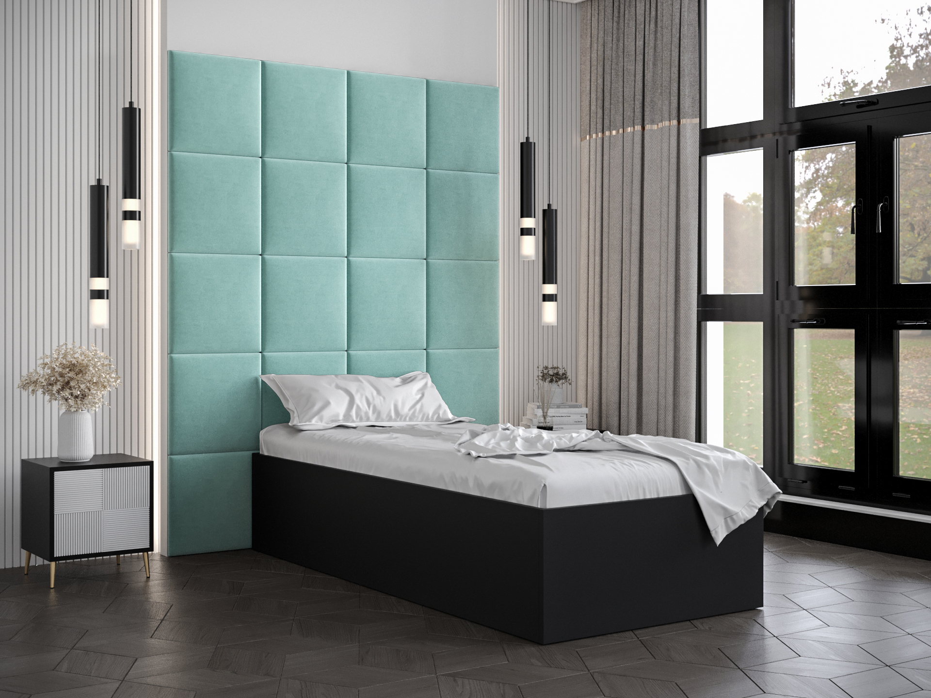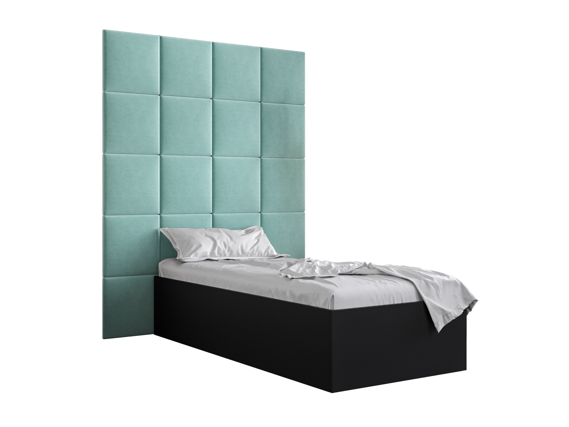 Egyszemélyes ágy kárpitozott fejtámlával 90 cm Brittany 3 (matt fekete + menta) (ágyráccsal)