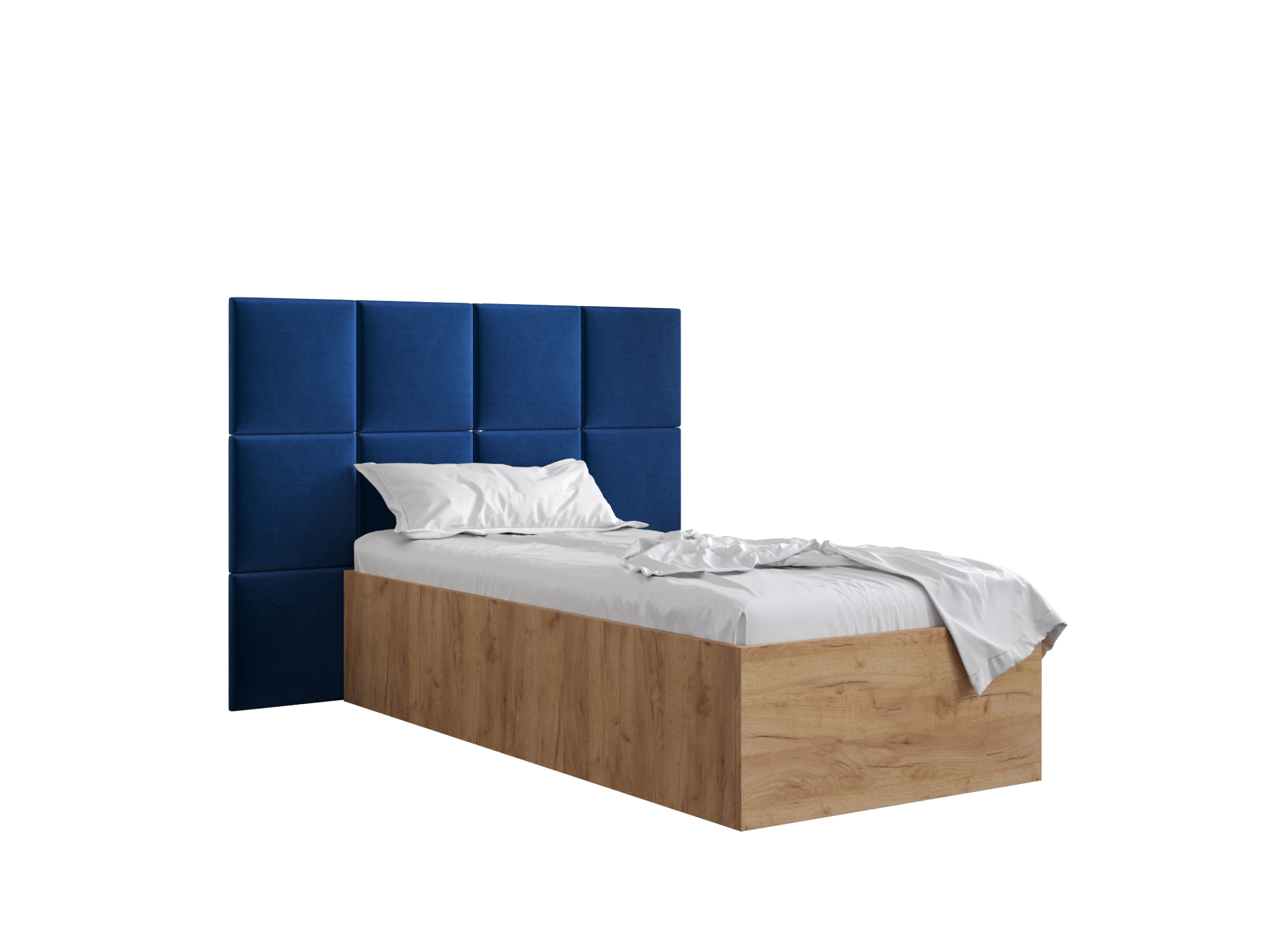 Egyszemélyes ágy kárpitozott fejtámlával 90 cm Brittany 4 (arany craft tölgy + kék) (ágyráccsal)