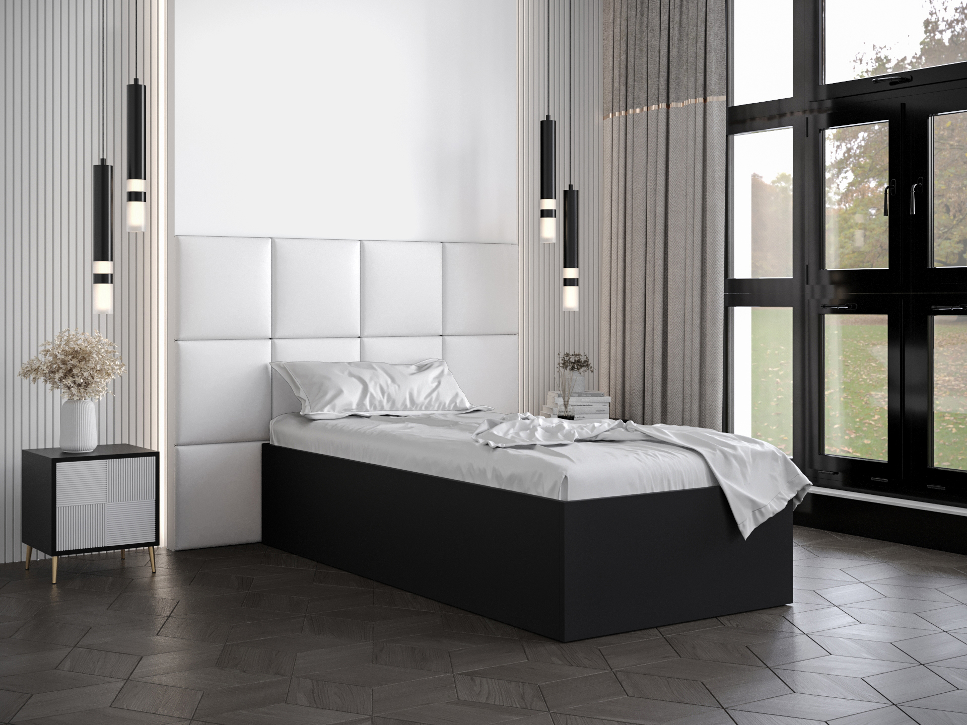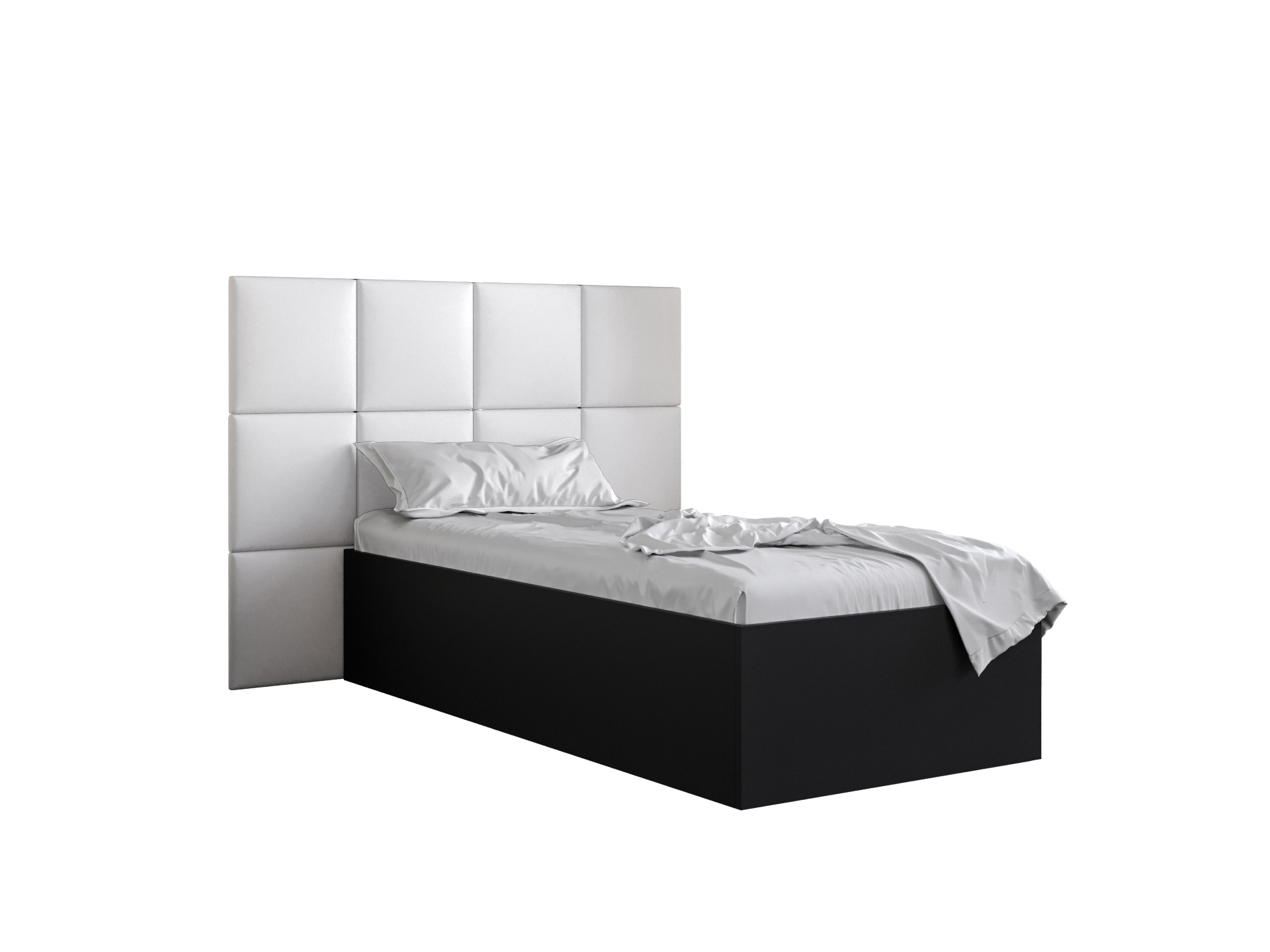 Egyszemélyes ágy kárpitozott fejtámlával 90 cm Brittany 4 (matt fekete + fehér) (ágyráccsal)