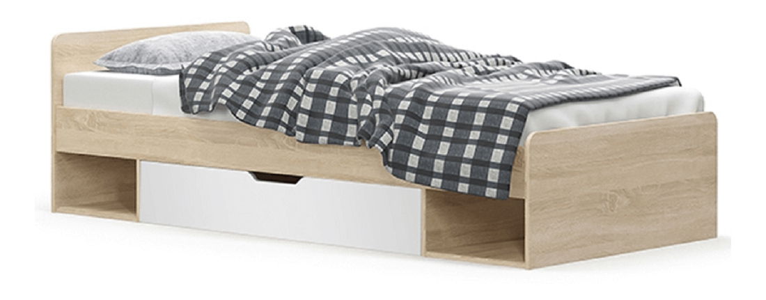 Egyszemélyes ágy 90 cm Thornham 1S/90 (sonoma tölgy + fehér) (tárhellyel)