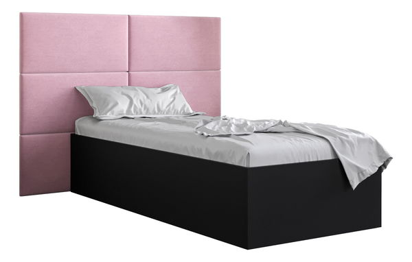 Egyszemélyes ágy kárpitozott fejtámlával 90 cm Brittany 2 (matt fekete + rózsaszín) (ágyráccsal)