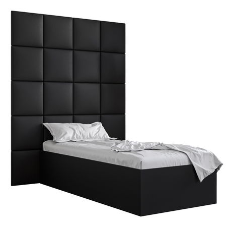 Egyszemélyes ágy kárpitozott fejtámlával 90 cm Brittany 3 (matt fekete + fekete) (ágyráccsal)