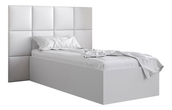 Egyszemélyes ágy kárpitozott fejtámlával 90 cm Brittany 4 (matt fehér + fehér) (ágyráccsal)