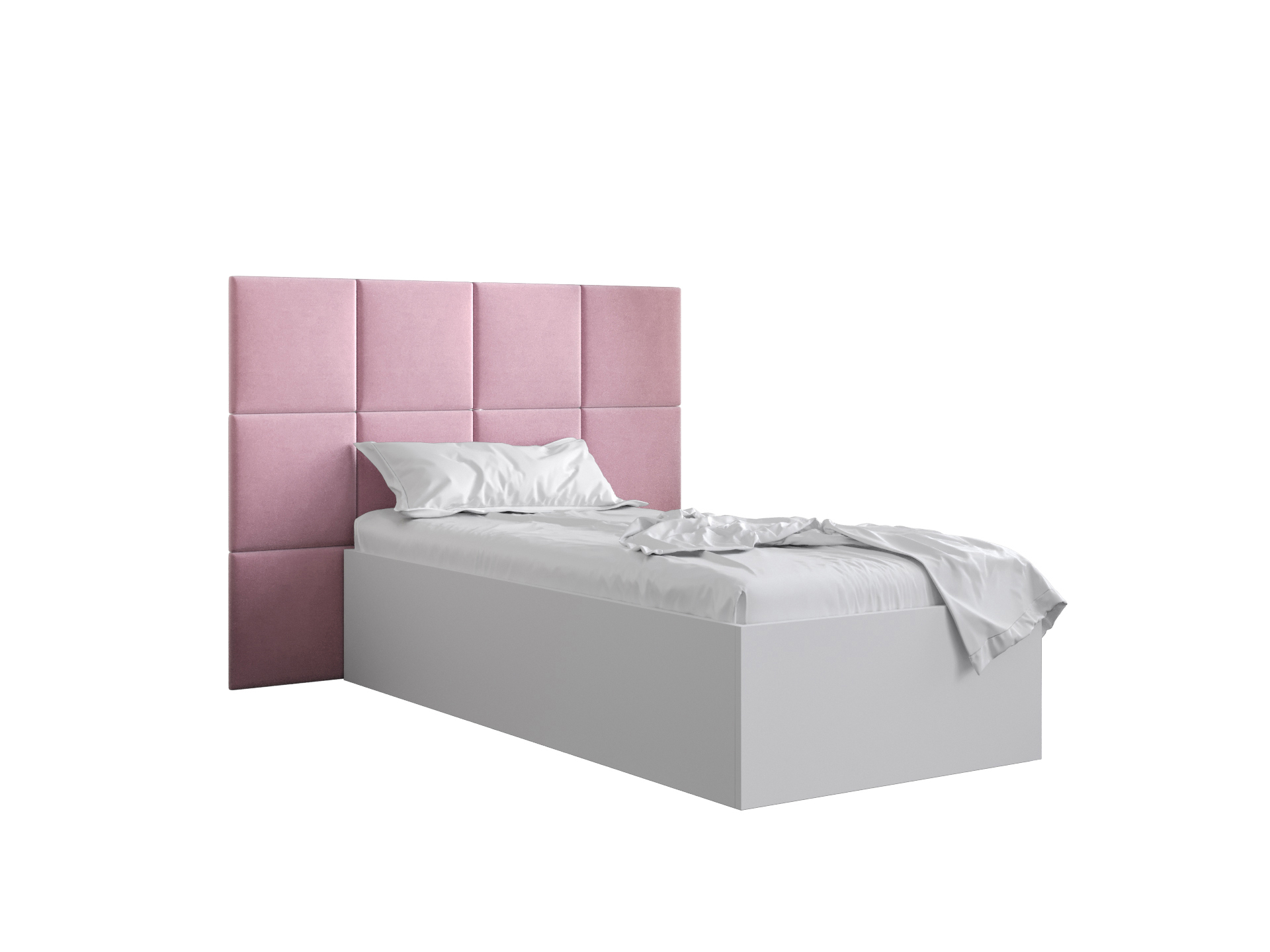 Egyszemélyes ágy kárpitozott fejtámlával 90 cm Brittany 4 (matt fehér + rózsaszín) (ágyráccsal)